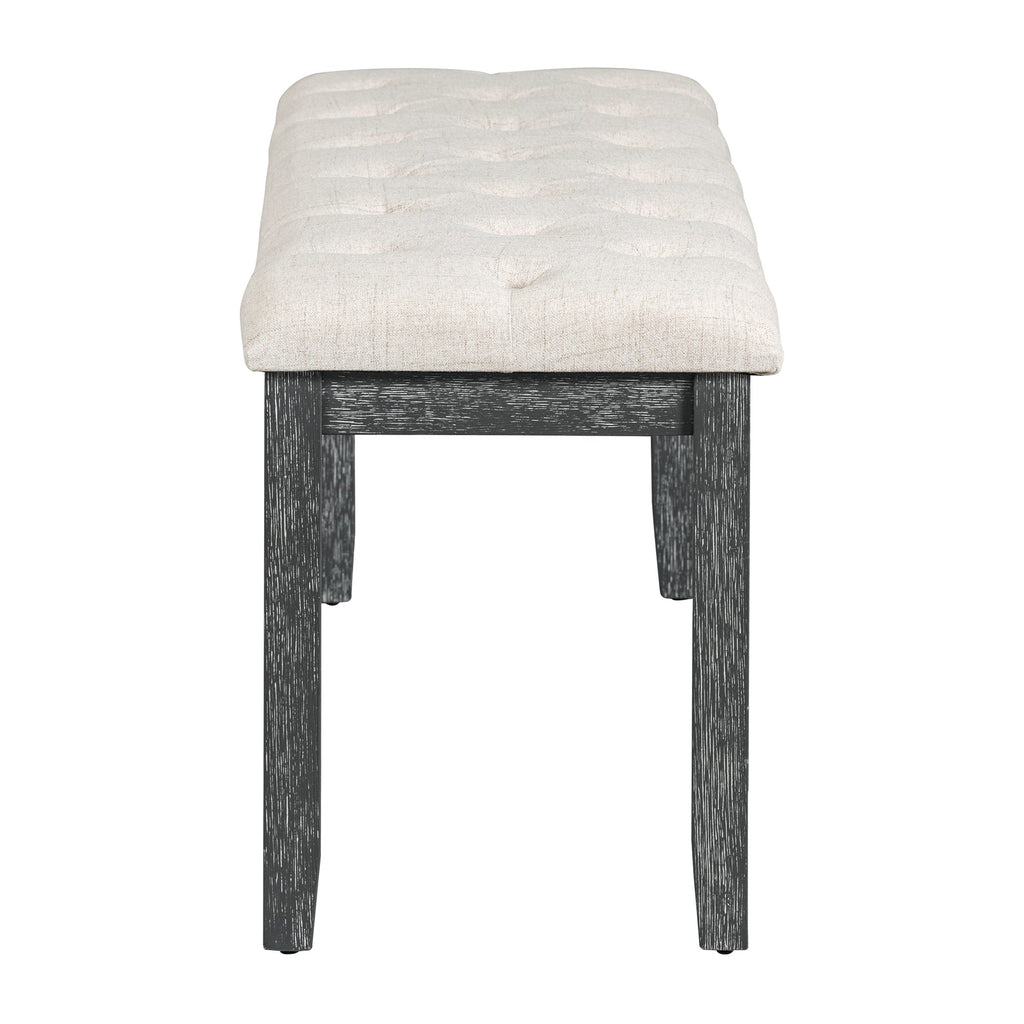 • This dining set includes one table, four chairs and one dining bench, seating up to 6. The dining table can perfectly accommodate your family and guests without making you feel crowded. The spacious tabletop is not only much advantageous for the placement of dishes and other miscellaneous things, such as vases, fruit bowls, candles, etc, beautifully meeting your meal needs. Chairs, as well as the dining bench, are equipped with foam-padded cushions and beige fabric for superb comfort.