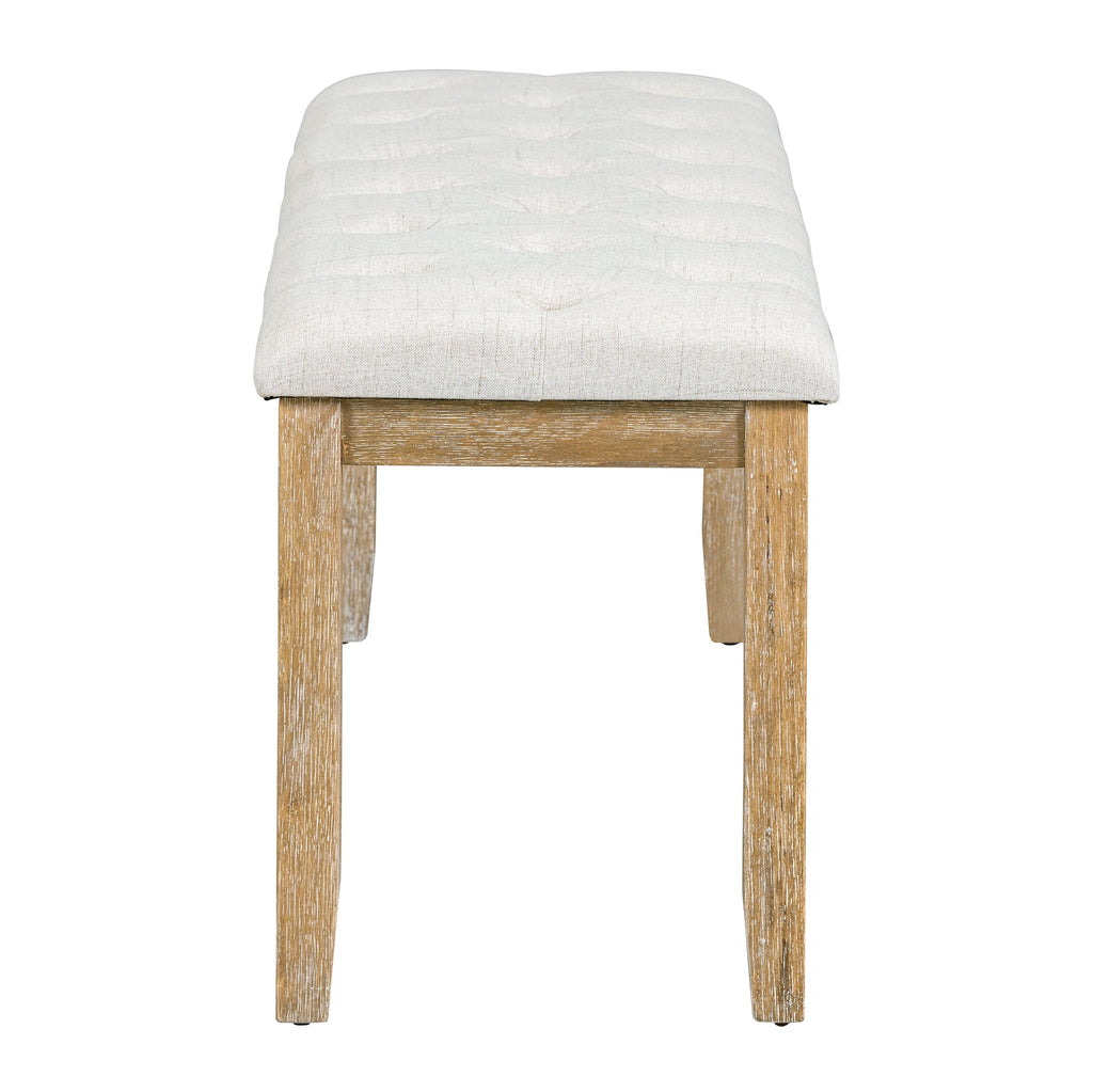 The tabletop is made of MDF and ash-wood veneer with a clear wood texture and smooth touch. As all other parts are crafted of tip-top quality LVL, needless to say, the dining set featuring excellent durability and stability will serve you for a lifetime. Each chair, as well as the dining bench, is equipped with thick foam-padded seats underneath smooth and beige fabric for superb seating comfort. The load-bearing capacity of the table, chair, and bench is separately 300 LBS, 250 LBS, 250 LBS.