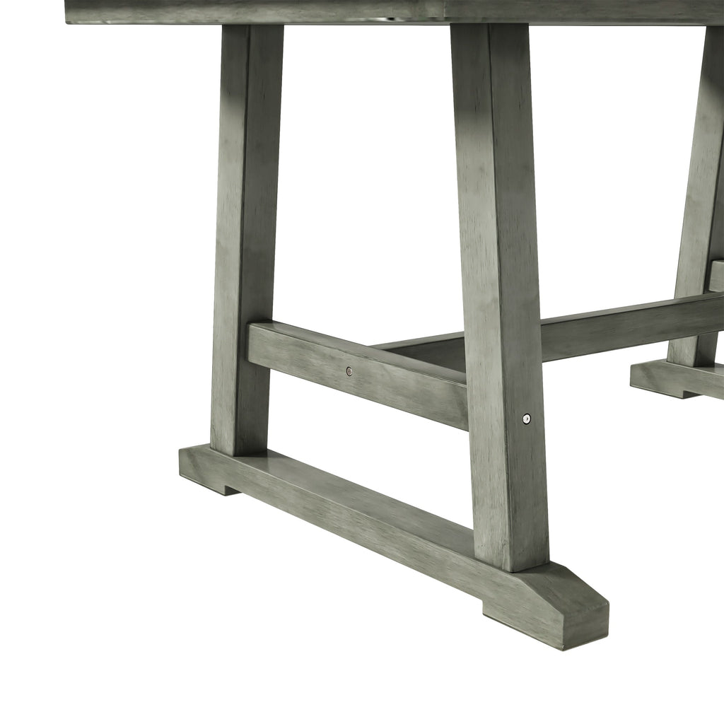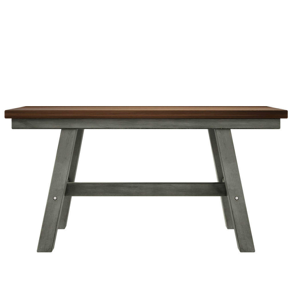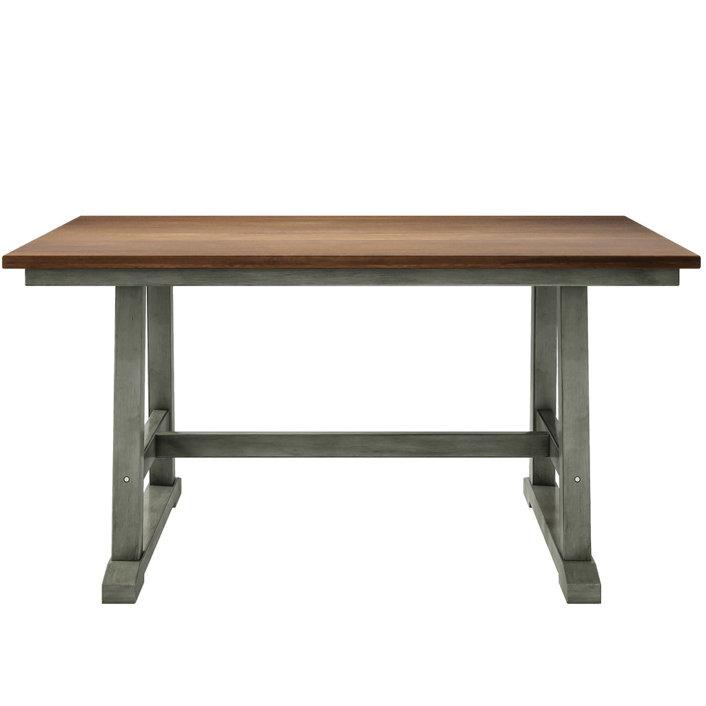 6-Piece Wood Dining Table Set Kitchen Table Set with Long Bench and 4 Dining Chairs, Farmhouse Style, Walnut+Gray