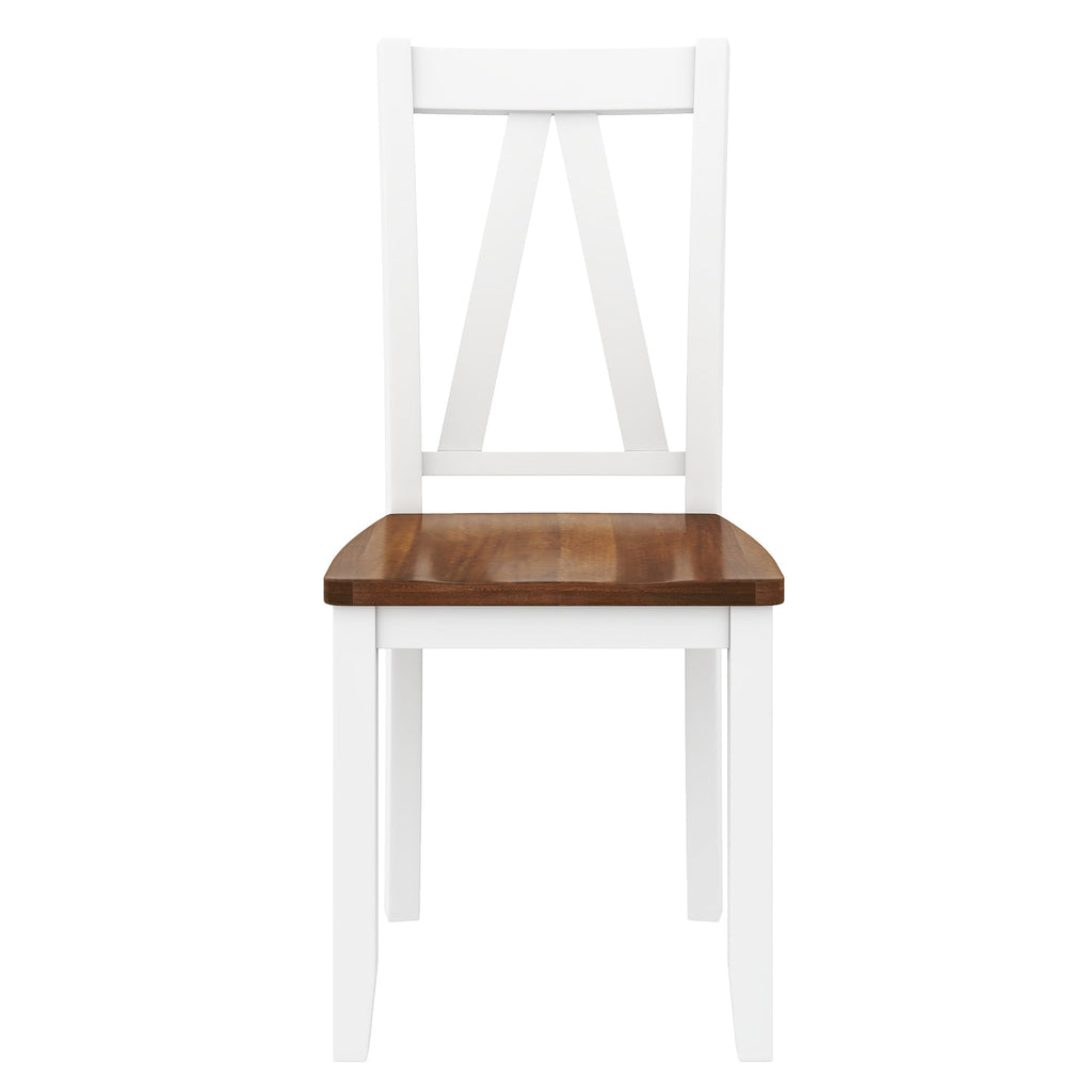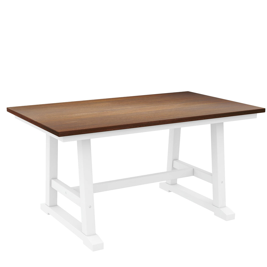 This dining table set is sure to wow your guests with the level of your taste. The rustic dining table features a classical walnut tabletop and white frame. Splayed bracket feet with a long stretcher under table provides effortlessly rustic aesthetic taste while also with extra support.