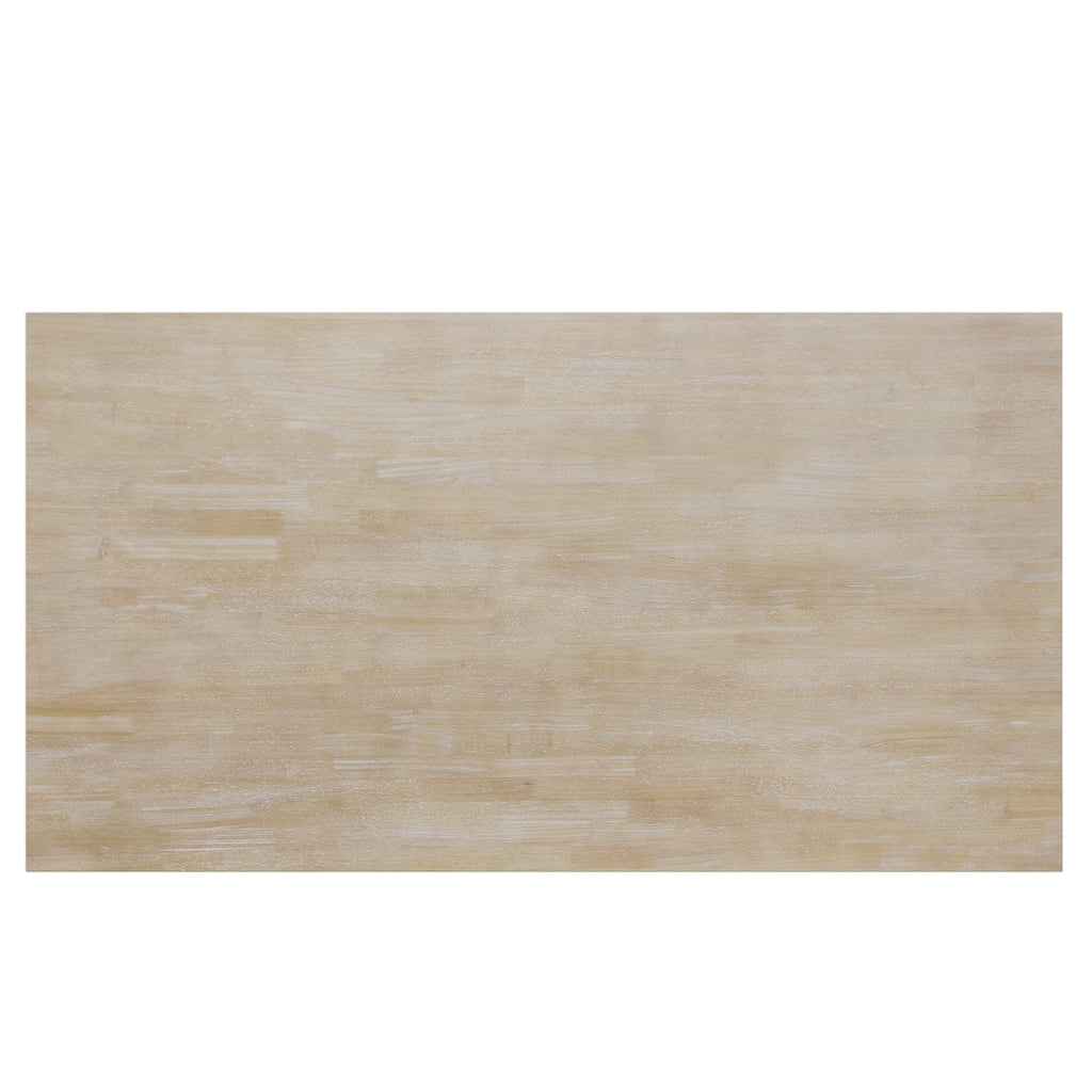 Introducing our solid wood dining table, featuring a spacious 59.1x35.4-inch tabletop. The table boasts a unique design with two half-round legs and a sturdy rectangular base, providing exceptional support. The support board measures 36x20 inches, crafted from durable rubberwood.