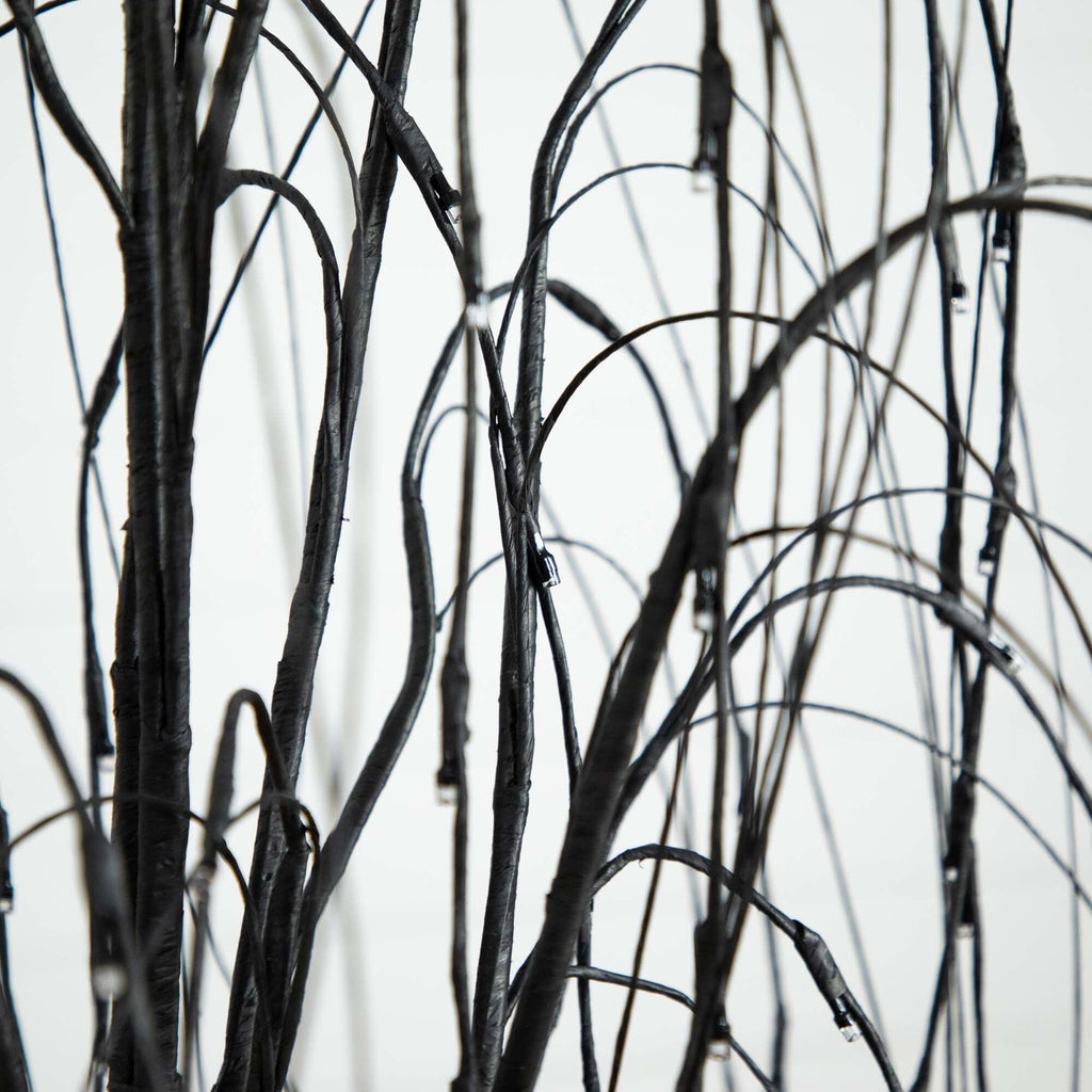 Welcome the scary season with this Halloween-inspired willow tree that'll delight any goblin. If you want a custom look, you can shape the branches, just like brushing a witch's hair, to make them resemble a long black draping mane. 160 multicolored pre-strung LED lights create a cozy show and you can alternate between purple and orange lights by pressing a button on the plug-in base. This creates a spooky feel perfect for your dream haunted house. The LED lights create a centerpiece that sets the mood for a hauntingly delightful atmosphere and the shaping is your hocus pocus time to shine. The energy-efficient lights save you both time and money on the electric bill. Standing 6' from a sturdy black base, it adds an eerie and enchanting touch to any space. Decorate with other accents such as wreaths, spiders of pumpkins.