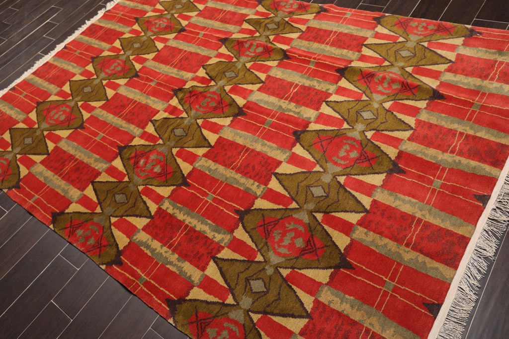 5'4" x 8'9" Hand Knotted 100% Wool Tibetan Oriental Area Rug Contemporary Red