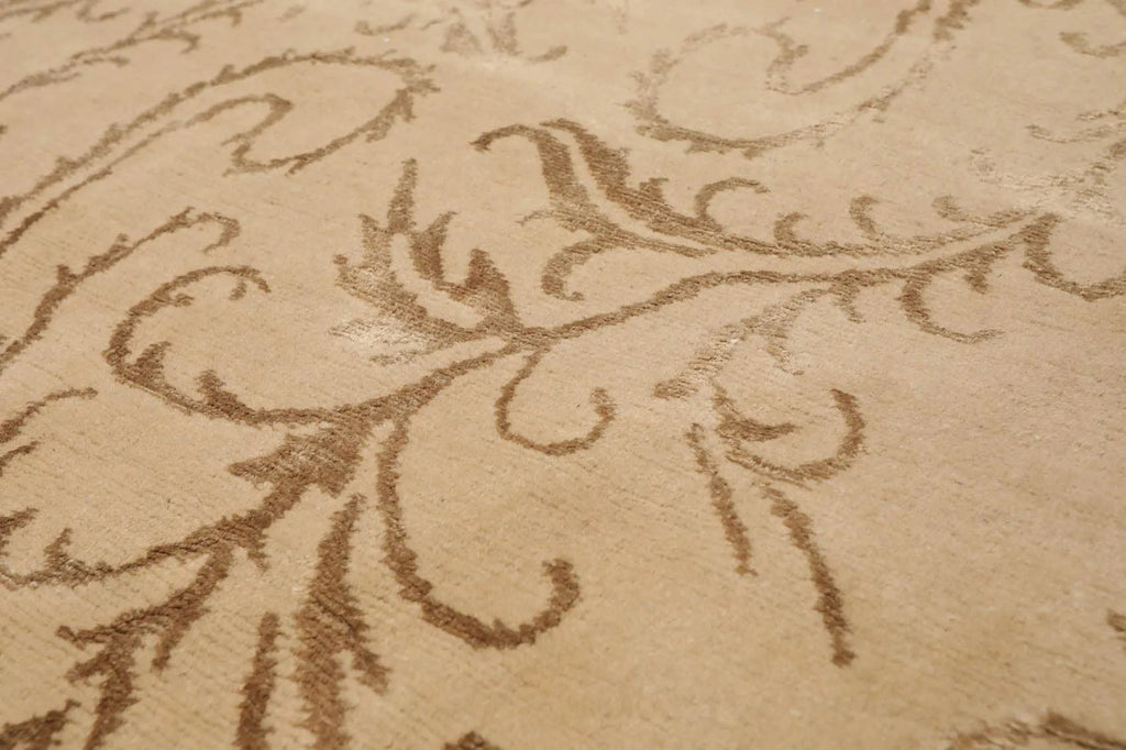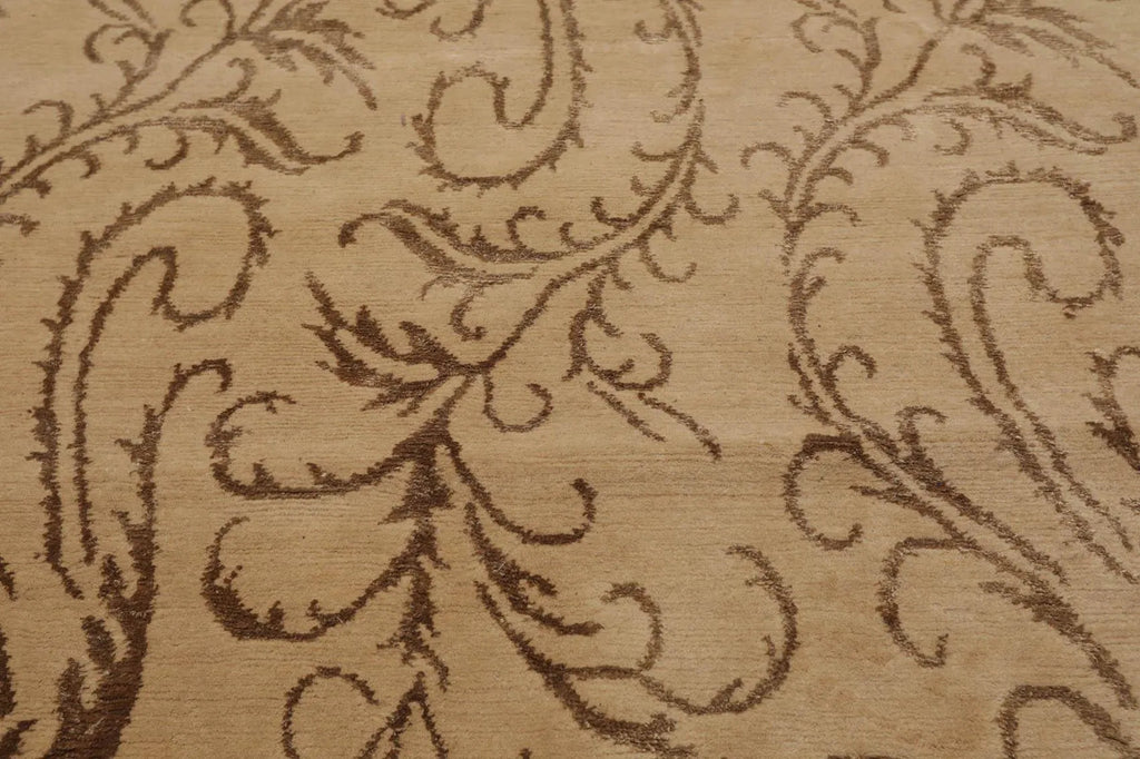 Story Behind the Art For centuries Tibetans have used rugs for decorative and functional purposes, drawing upon geometric patterns, auspicious symbols, real and mythical animals, and natural imagery to create beautiful, colorful designs. But it was only after 1959 with the Chinese invasion of Tibet and the growth of Tibetan diaspora in Nepal and Tibet that Tibetan rug weaving underwent a crucial commercial revival. In the 1970s, Tibetan rugs rose to prominence and Nepalese artisans, drafted in to keep up with the rising demand, became the mainstay of the Tibetan rug weaving traditions. While either Turkish knot or the Persian knot (Senneh knot) is used to create the pile or depth of a rug in most of Asia, the Tibetan rug utilizes a slit-loop technique called the Tibetan knot. Here rugs are woven by wrapping a continues length of yarn over a rod laid across the warps stretched on the loom. When the rod has been wrapped for its entire length, a knife is slid along the rod, cutting the wrapped yarn into two rows of pile tufts. The resultant pile is a wonderful mix of depth, texture and richness. Traditional Tibetan rug motifs generally reflect the importance of Buddhist religion in Tibetan art and culture. Many design elements of Chinese origin like the phoenix, dragon, and lotus symbols alongside motifs from Chinese decorative tradition have also been assimilated in the rug repertoire of this region. In modern times, designs featured in Tibetan, Nepalese rugs (those woven by Tibetan refugees in Nepal) and Indo-Tibetans (woven in India) range from Westernized adaptations of traditional Tibetan motifs (such as branching floral designs and snow lions) to a large mixture of foreign and modern free-form patterns.