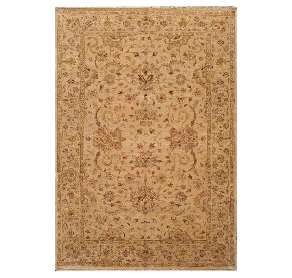 6' x 8'9" Hand Knotted 100% New Zealand Wool Agra Oriental Area Rug Tan