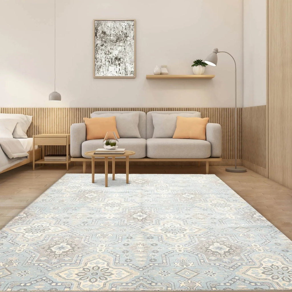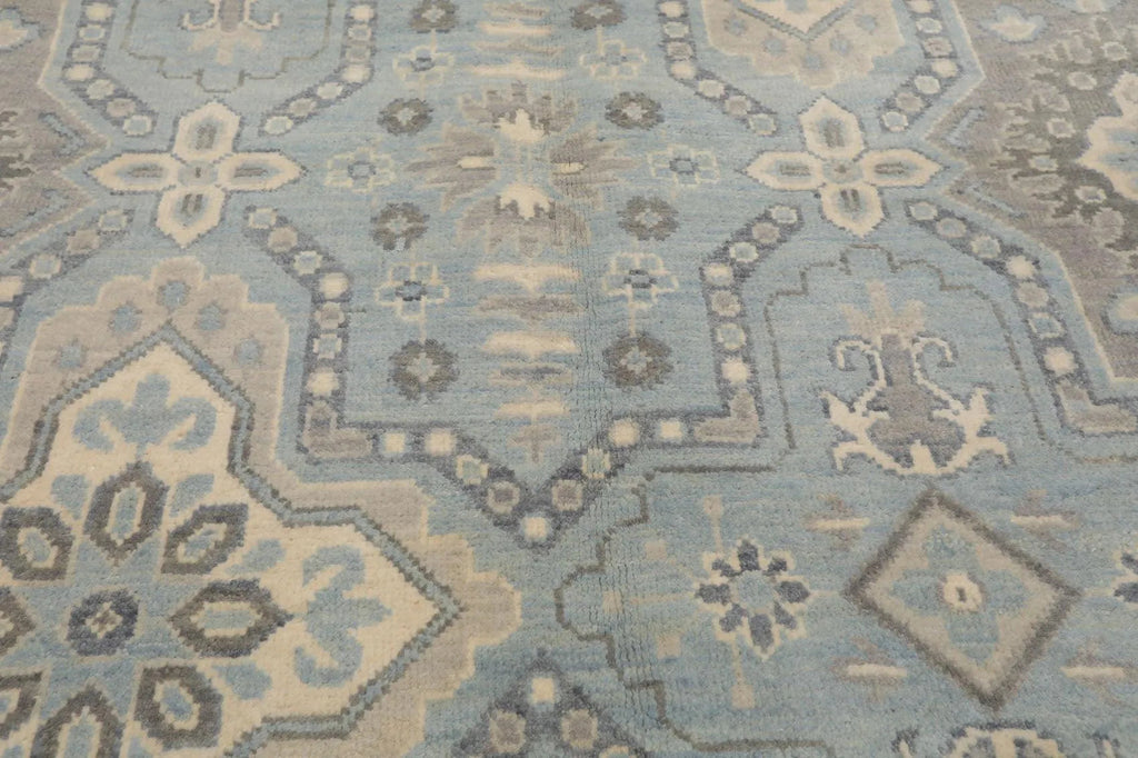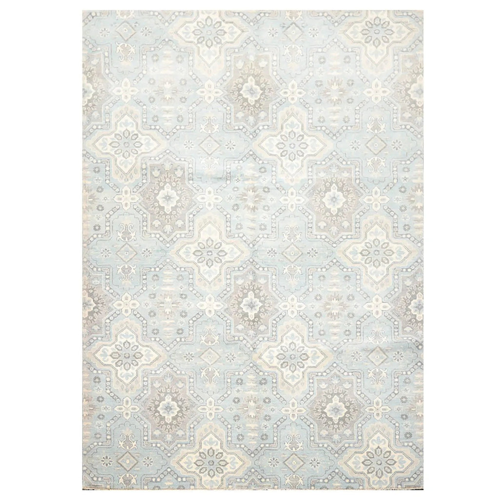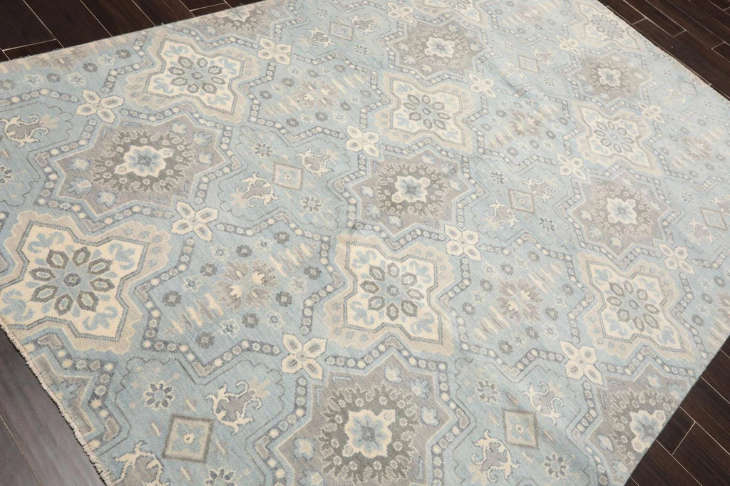 This is a beautiful Blue, Ivory, Gray Color Geometric design Hand Knotted, Oriental 100% Wool Rug. Its elegant style is easy to decorate with and perfect for living room, dining room, bedroom or anywhere in the residence and office.