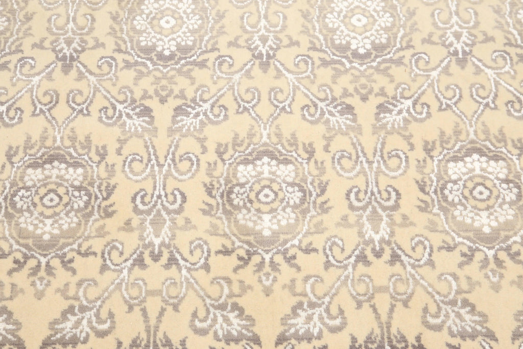 This is a beautiful Beige Light Brown Ivory Color Hand Knotted Oriental Wool & Bamboo Silk Rug. Its elegant style is easy to decorate with and perfect for living room, dining room, bed room or anywhere in the residence or office.