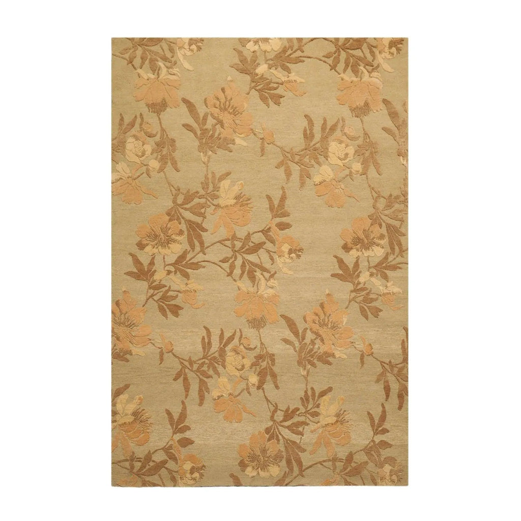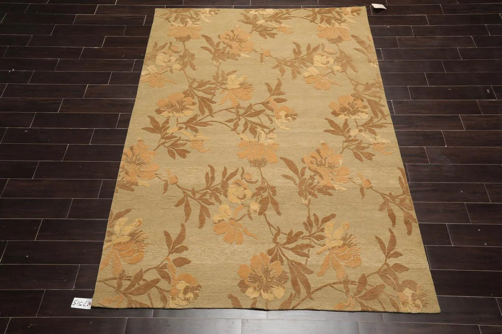 6' x 9' Hand Knotted Tamarian 100% Wool Tibetan Transitional Oriental Area Rug Olive, Brown Color
