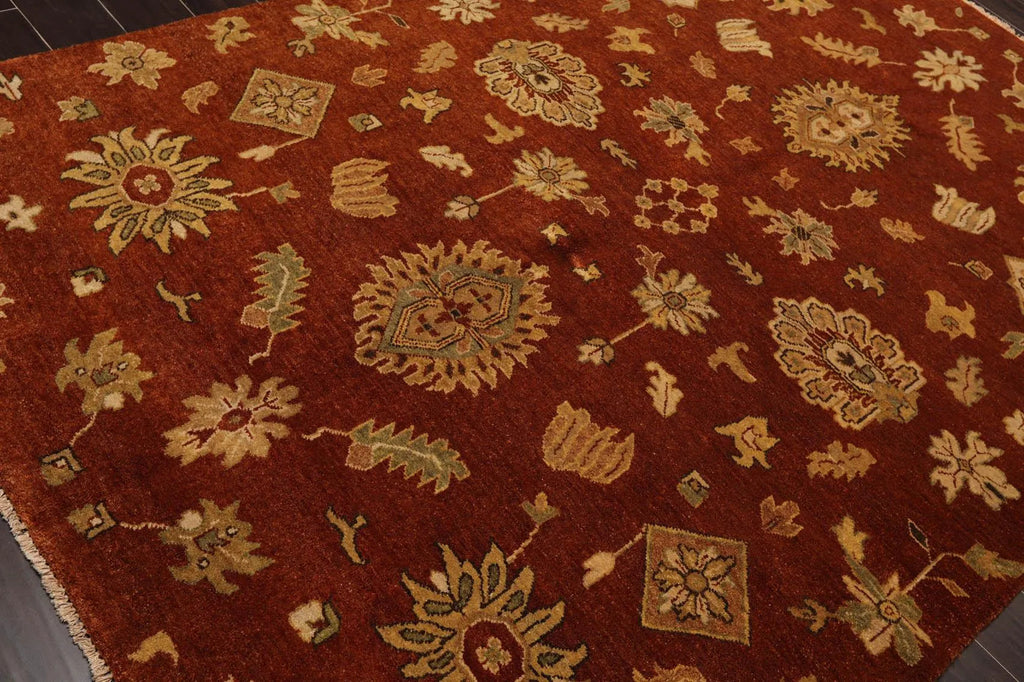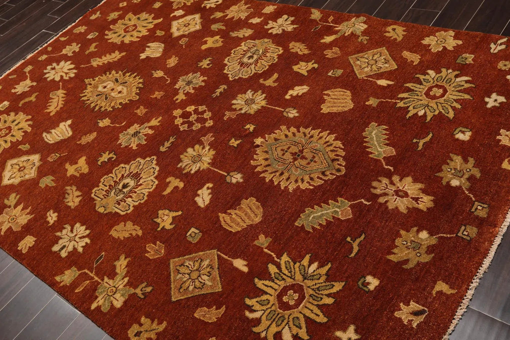This is a beautiful Burnt Orange, Gold, Aqua Color Botanical design Hand Knotted, Persian Oriental 100% Wool Rug. Its elegant style is easy to decorate with and perfect for living room, dining room, bedroom or anywhere in the residence and office.