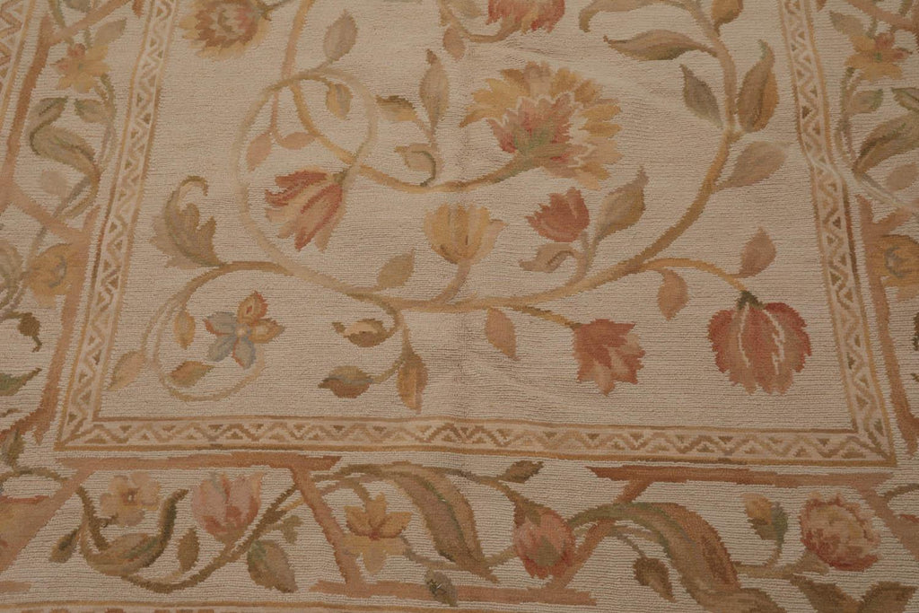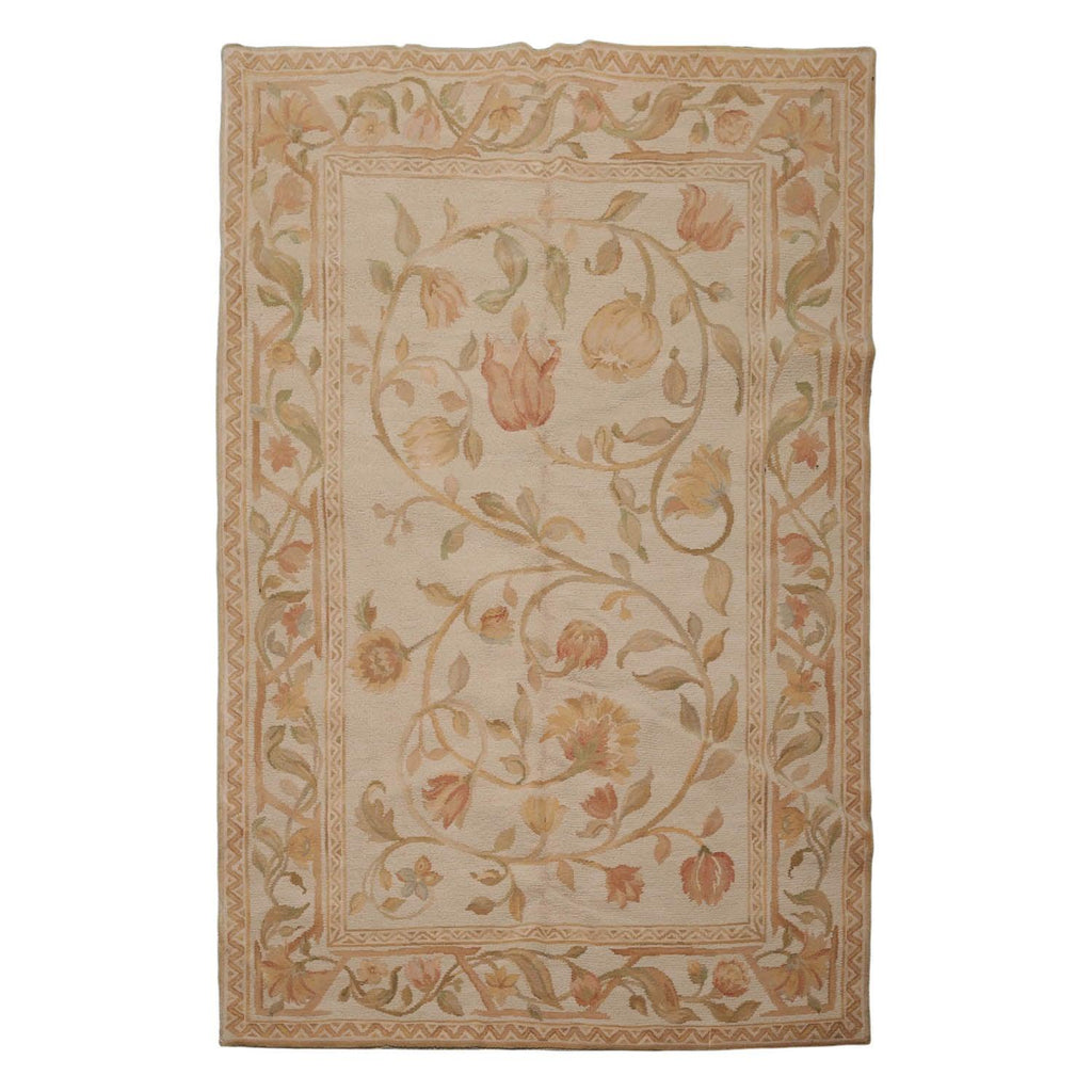 Story Behind the Art The Savonnerie rugs have their origins in French pile floor coverings that were produced at the Savonnerie Manufactory, most prestigious factory of knotted pile rugs, that enjoyed its greatest period during 1650-1685. Today the name Savonnerie depicts the tradition of knotted pile Savonnerie rugs with their unique design and color schemata of essentially French designs, pictorial or armorial framed medallions, densely massed flowers in bouquets or leafy rinceaux against deep blue, black or deep brown grounds, within multiple borders. Further what distinguishes French Aubusson Savonnerie rugs is the technique of depth perspective that was invented by 17th century French artists and weavers whereby the patterns in the rug seem three dimensional. As such, Aubusson Rugs exhibit complex color patterns, symmetrical knots and flamboyant designs. Today, it is still possible to enjoy these rugs as they continue to be replicated in India, Pakistan, China, and Iran.