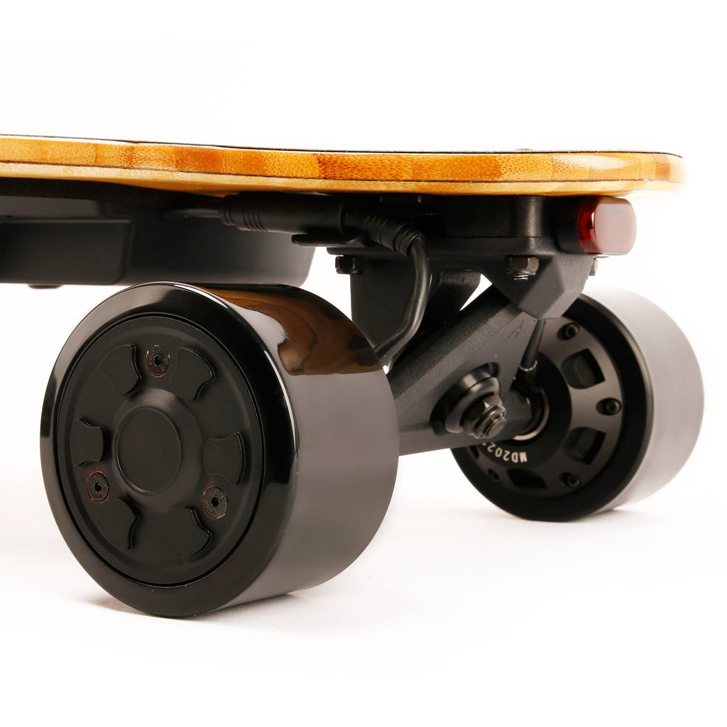 The ANZO longboards designed with dual wheel hub motor and 600W per motor. The skateboards reached a maximum speed of 25mph and climbed at a 30%. 9.6ah strong endurance battery pack,high-performance battery charging takes only 2-3 hours, 40 kilometers battery range.