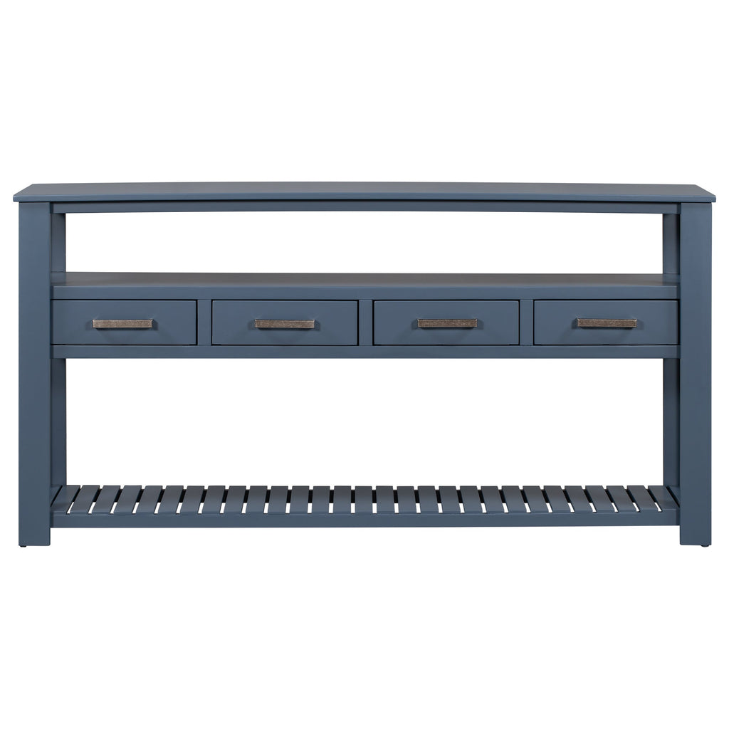 This vintage console table is functional designed to meet all kinds of storage demands. There are four drawers and 2 shelves to provide large storage space for your files, sundries and daily necessities and keep organized. Top and middle board can place your beautiful vase, cute photos and decorations, additional knickknacks or a lamp.