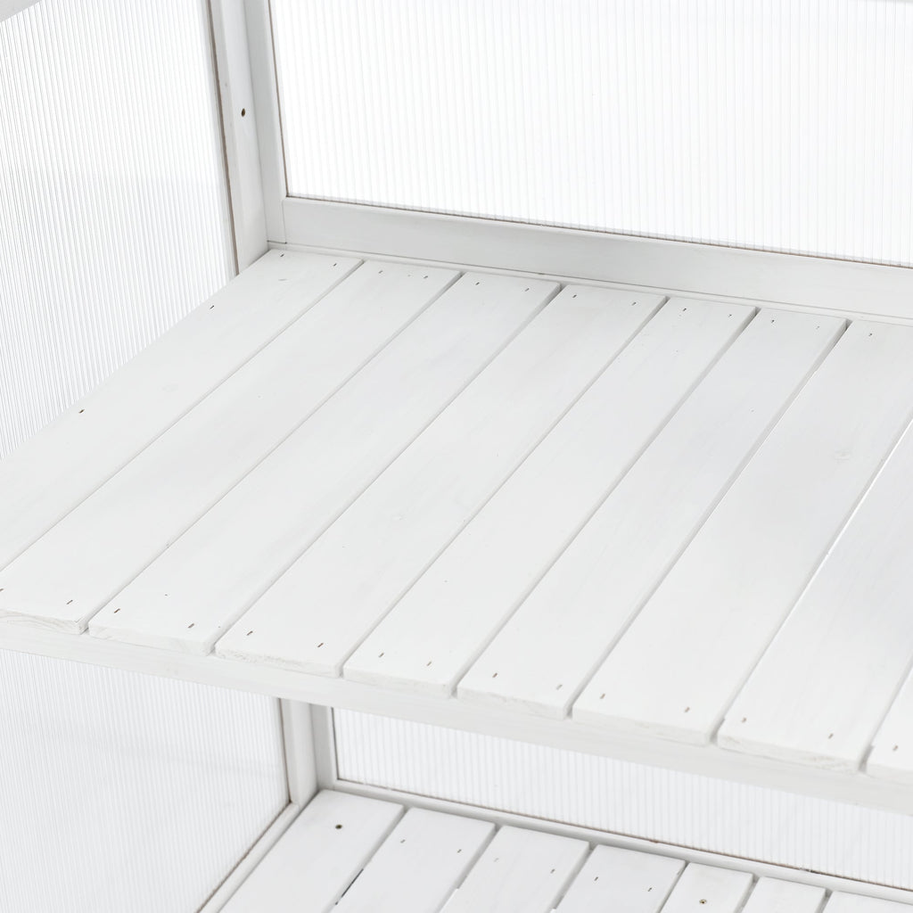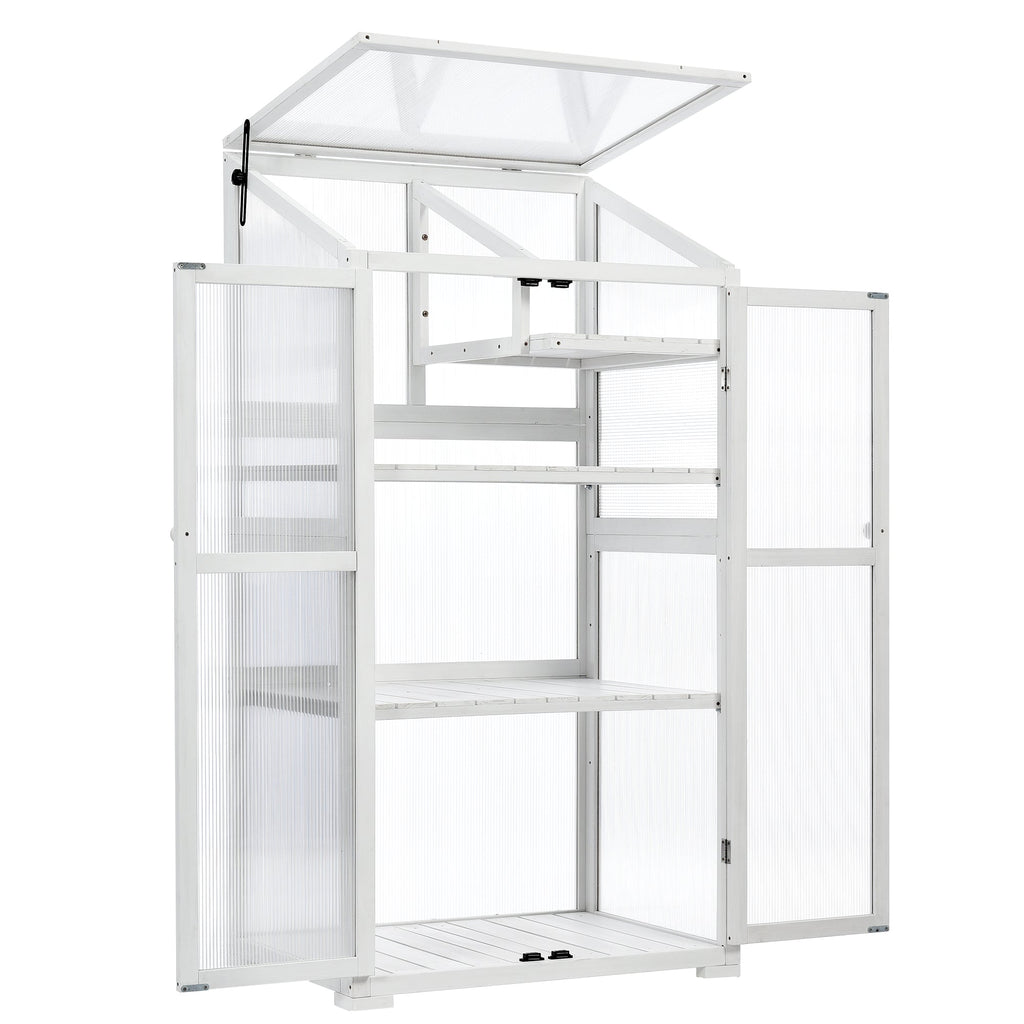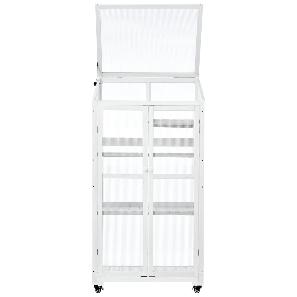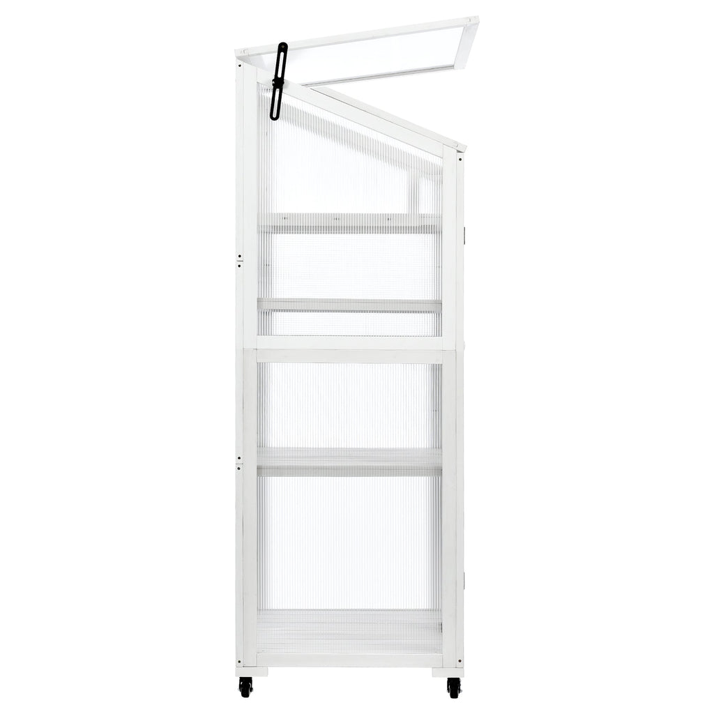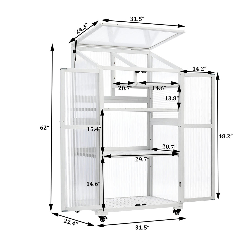 - [Balcony Wood Greenhouse] This mini greenhouse is made of fir wood and polycarbonate panels. Compared with other wood cold frame, this one is larger and higher which the size is up to 31.5x22.4x62inch(LXWXH)so that you can have more plants without taking up so much places in your balcony.