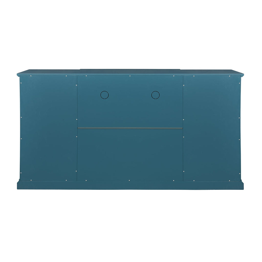 63" TV Stand, Storage Buffet Cabinet, Sideboard with Glass Door and Adjustable Shelves, Console Table for Dining Living Room Cupboard, Teal Blue