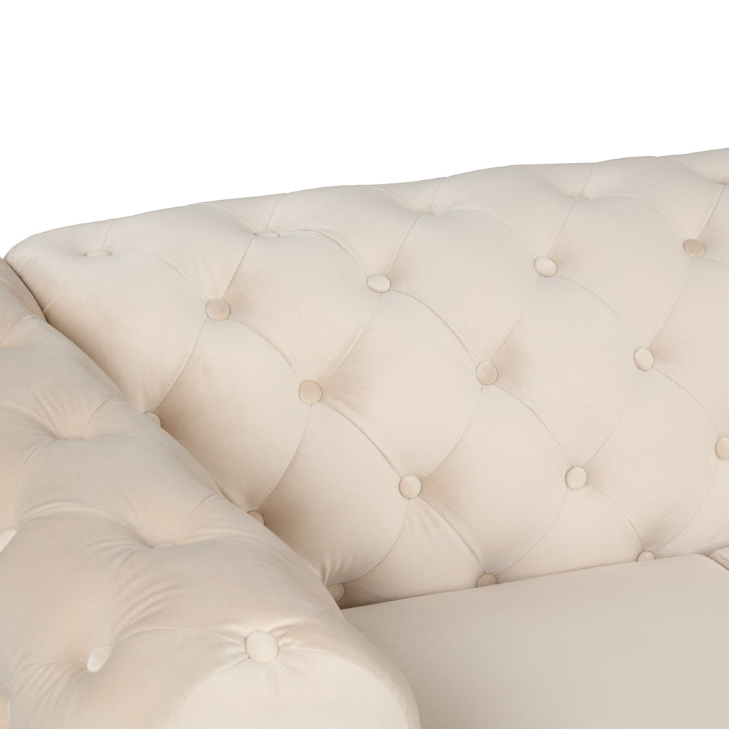 【Sturdy and Comfortable】The sofa couch built with a sturdy wood frame, the cushioning of this living room sofa filled with high-resilient foam and metal springs, very comfortable to sit or lay on. 【Button Tufting】This sofa is supported by beautifully metal legs which offer an durable structure and attractive look. 【Sturdy Metal Legs】Our sectional sofa couch is made of high quality velet fabric.The fabric feels soft and delicate with bright color.It is not easy to fade,good wrinkle resistance. 【Modern Sofa】Modern velvet sofa decorated with metal legs. Simple and advanced, a great addition to completing your living room bedroom office, perfect accent furniture to match your decor.