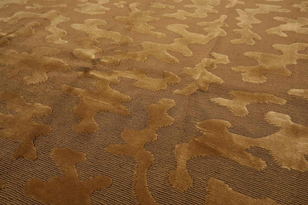 This is a beautiful Brown, Gold Color Loop & Cut Pile Hand Knotted Tibetan Oriental Area Rug Wool Rug. Its elegant style is easy to decorate with and perfect for living room, dining room, bed room or anywhere in the residence or office.