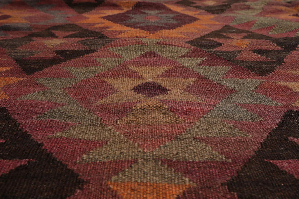 Story Behind the Art Bold, distinctive patterns; brilliant colors; affordability-these are some of the characteristics that explain the overwhelming popularity of the exquisite, flatwoven textiles from the Near and Far East known as kilims. Kilim designs are made by interweaving the variously colored wefts and warps, thus creating what is known as a flatweave. Kilim patterns are created by winding the weft threads, which are colored, backwards and forwards around pairs of warp threads. The motifs on kilims woven in this way are constrained to be somewhat angular and geometric. Kilims are prized by collectors for the crispness of their decoration.