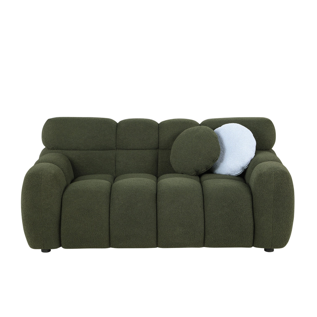 - 64.96 length ,35.83" deepth ,human body structure for USA people, marshmallow sofa,boucle sofa olive green color,3 seater