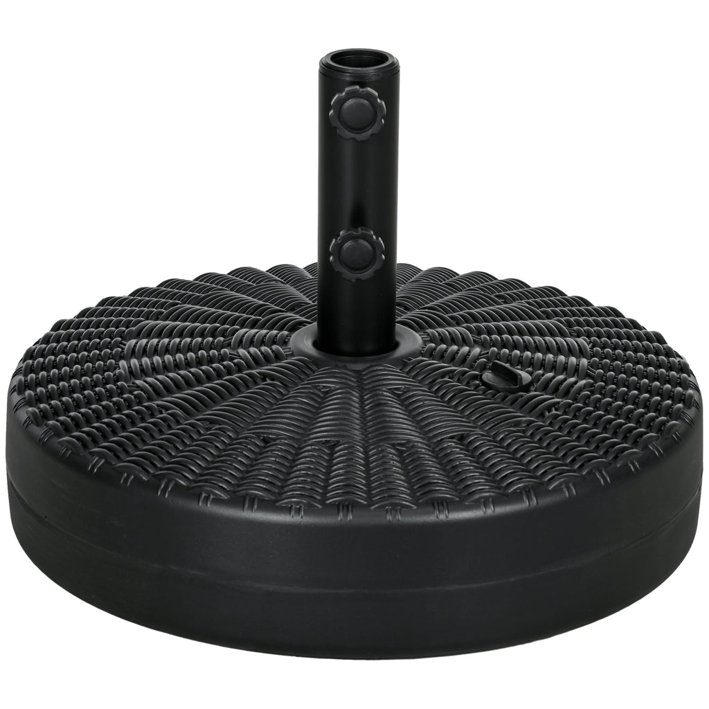 64 lbs. Fillable Umbrella Base with Steel Umbrella Holder, Round Umbrella Stand for 1.5" or 2" Umbrella Poles, Heavy Duty for Outdoor, Lawn, Deck, Poolside, Black