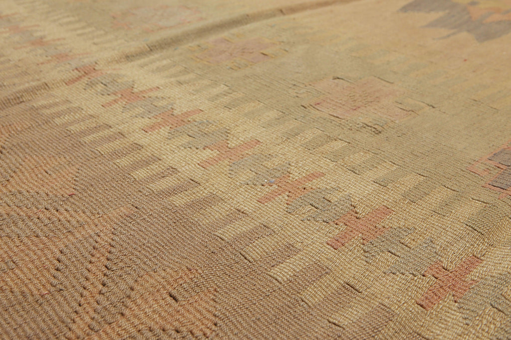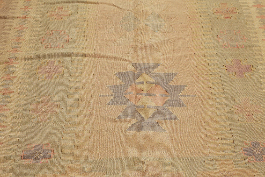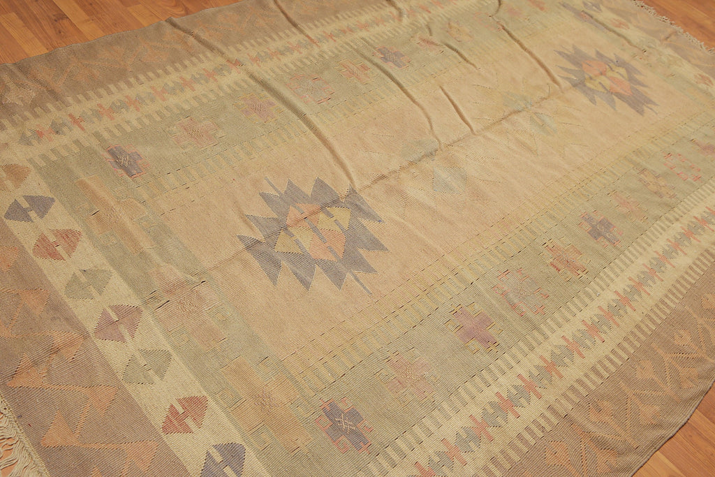 6'4" x 10'3" Tan Hand woven Tribal Turkish Kilim Wool Vegetable Dyes Traditional Oriental Area rug