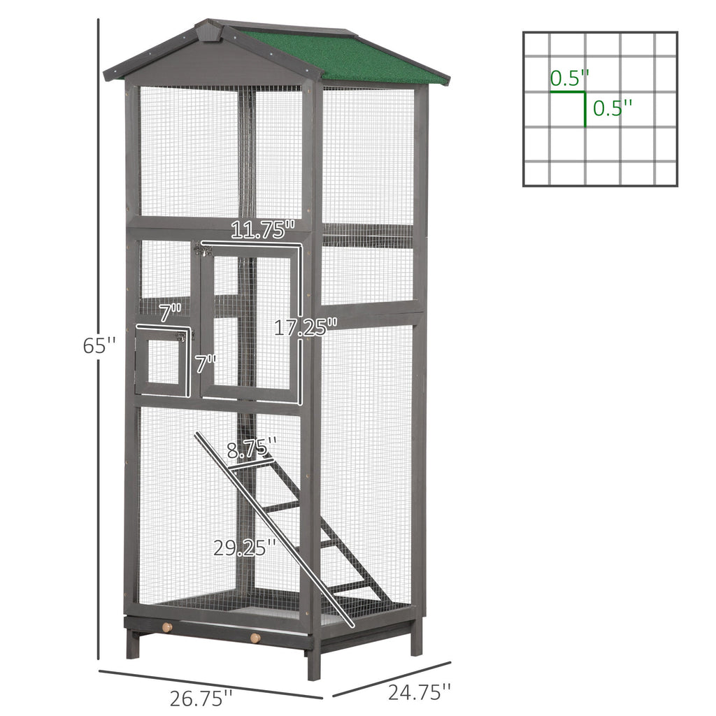 - Bird Habitat Information: Overall Dimensions: 26.75" L x 24.75" W x 65" H. Assembly Required.