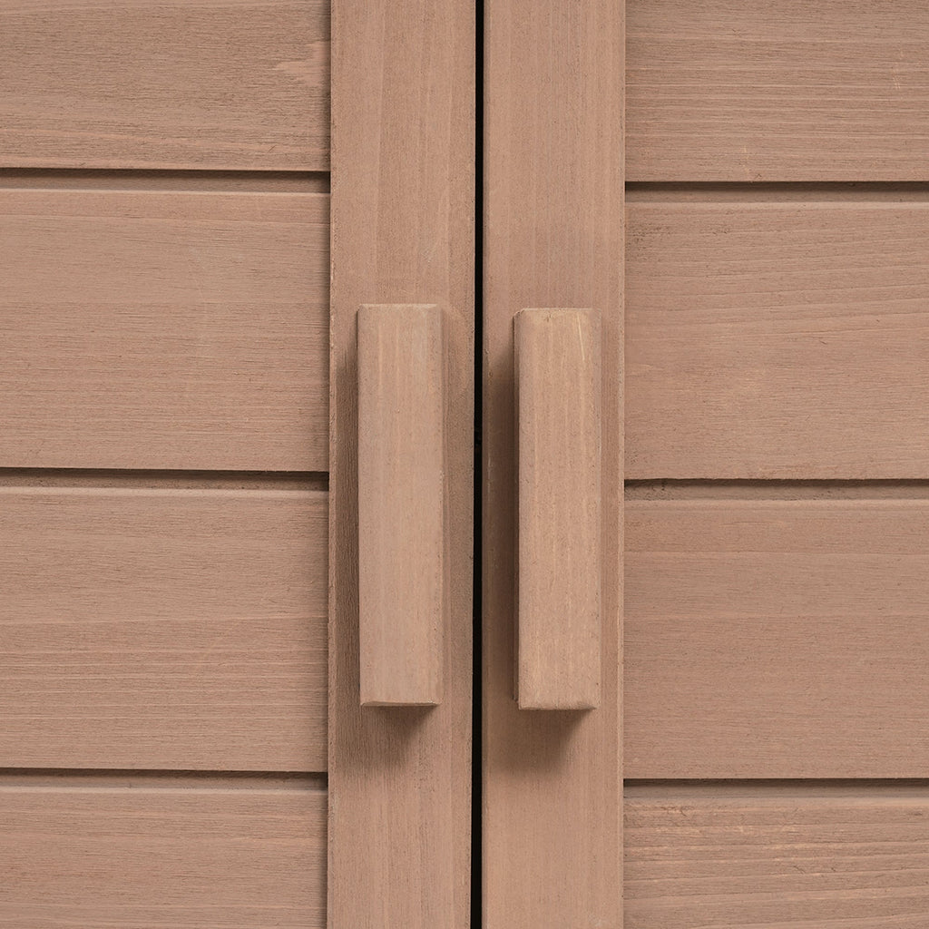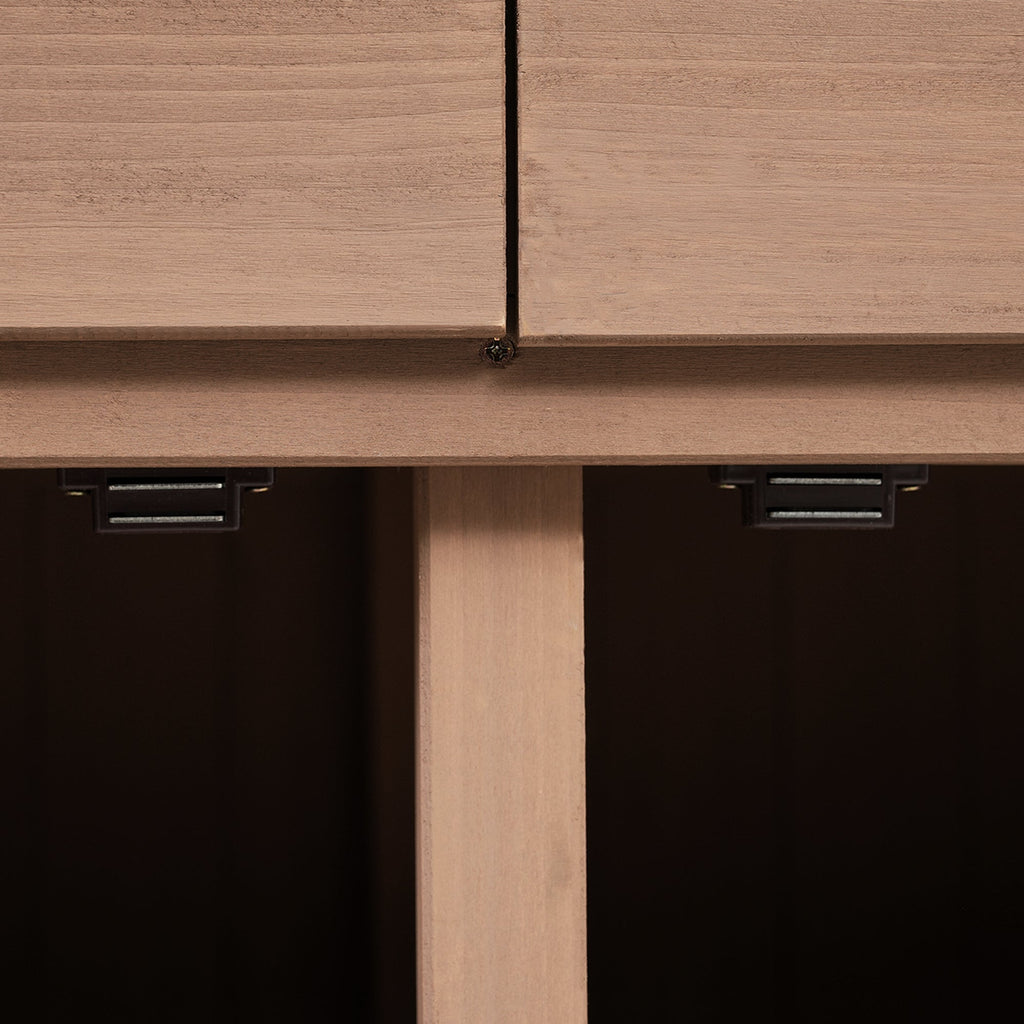 2 anti-falling devices in the back is to fix the bench with the wall for better safety. Besides, the cabinet door is equipped with magnetic, providing a more silent and soft click while latching or closing, efficiently preventing dust and insects entering, and leading to longer lifespan for the door