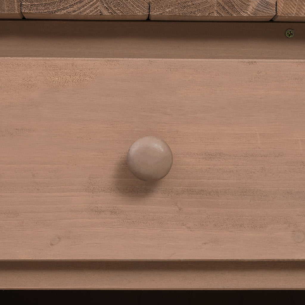 Summary Send the potting bench to yourself or your friends who are crazy gardening lovers. Our three-tier workstation features 2 drawers and 1 cabinet that keeps your favorite gardening tools right at your fingertips. The entire bench is constructed of durable, water-resistant fir wood for years of reliable performance. Equipped with anti-falling devices, the bench is designed for better safety.