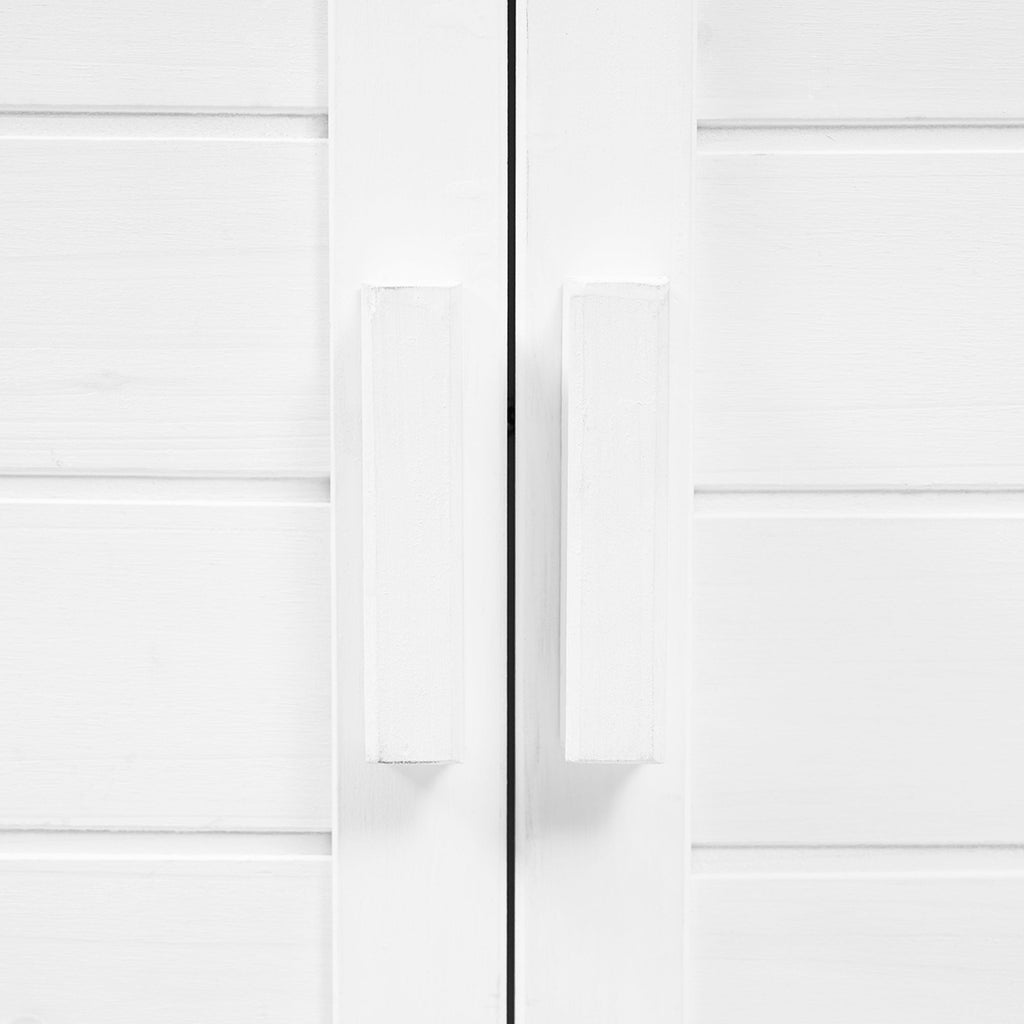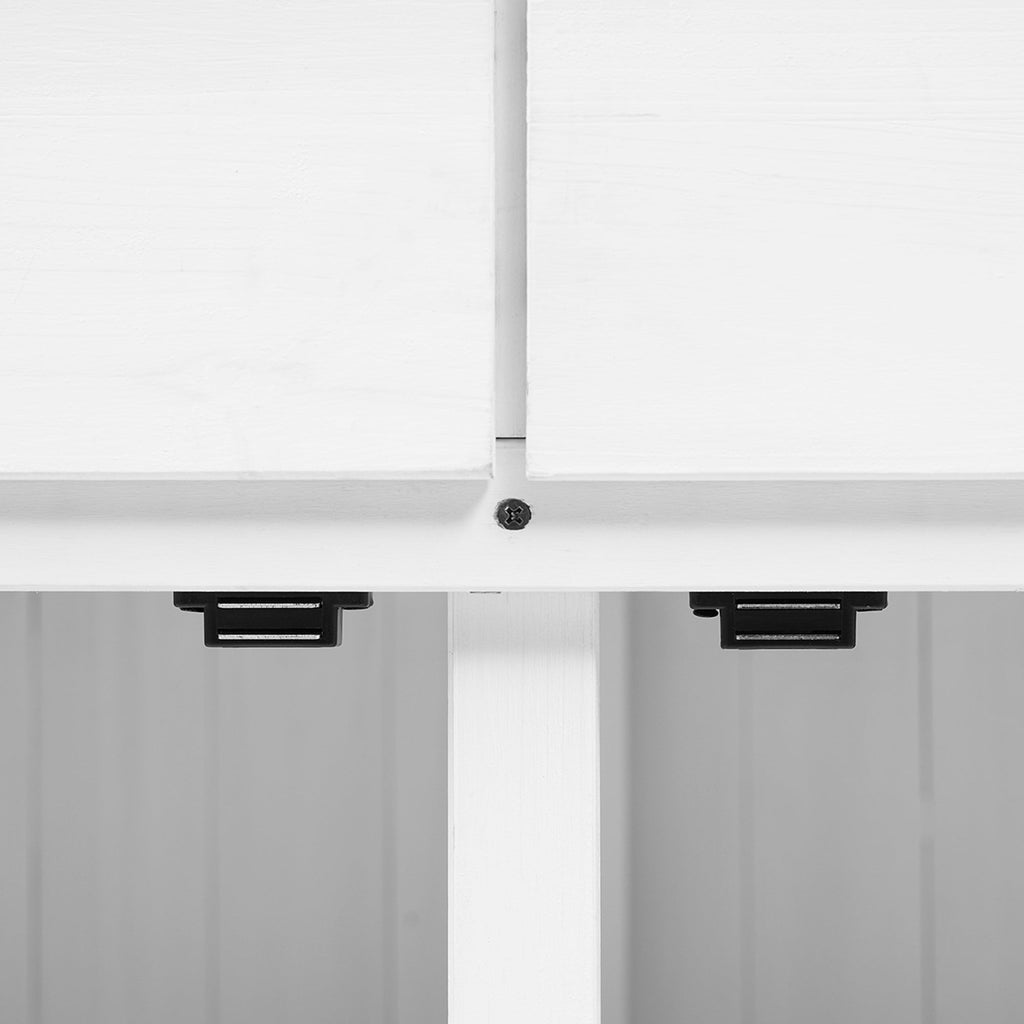 2 anti-falling devices in the back is to fix the bench with the wall for better safety. Besides, the cabinet door is equipped with magnetic, providing a more silent and soft click while latching or closing, efficiently preventing dust and insects entering, and leading to longer lifespan for the door
