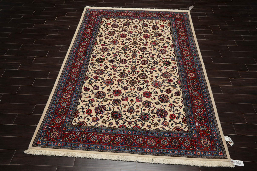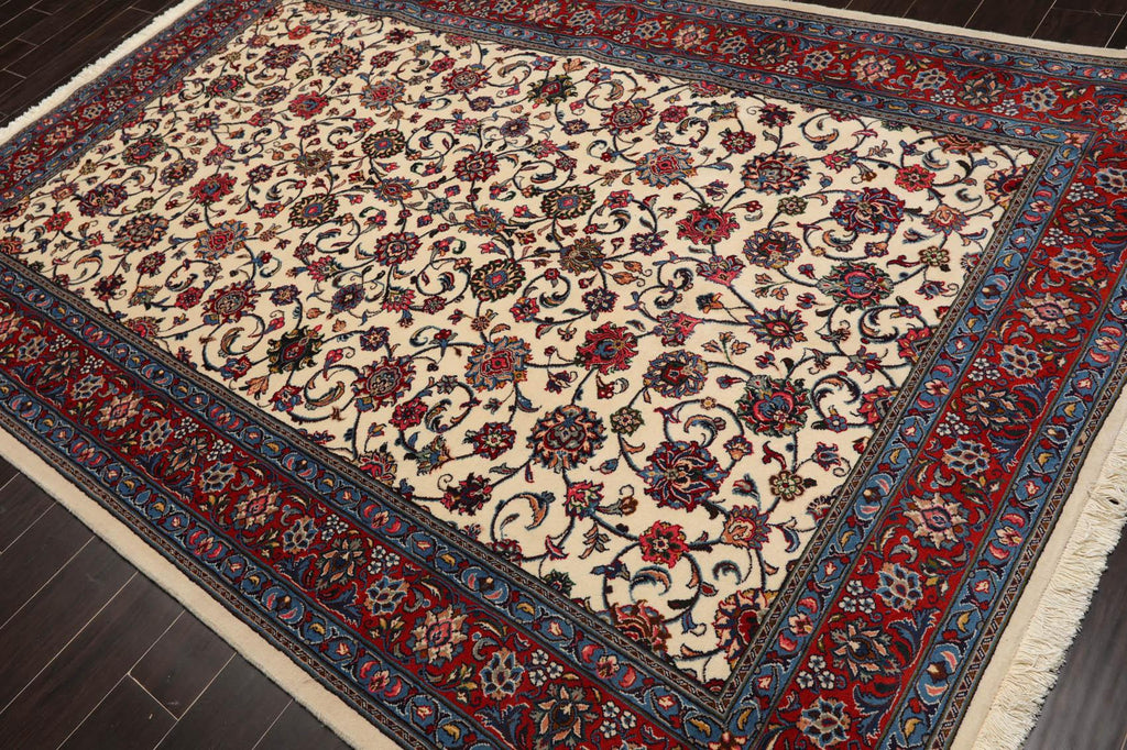 6'6"x 9'10" Authentic Hand Knotted Wool Sarouk 200 KPSI Oriental Area Rug Ivory