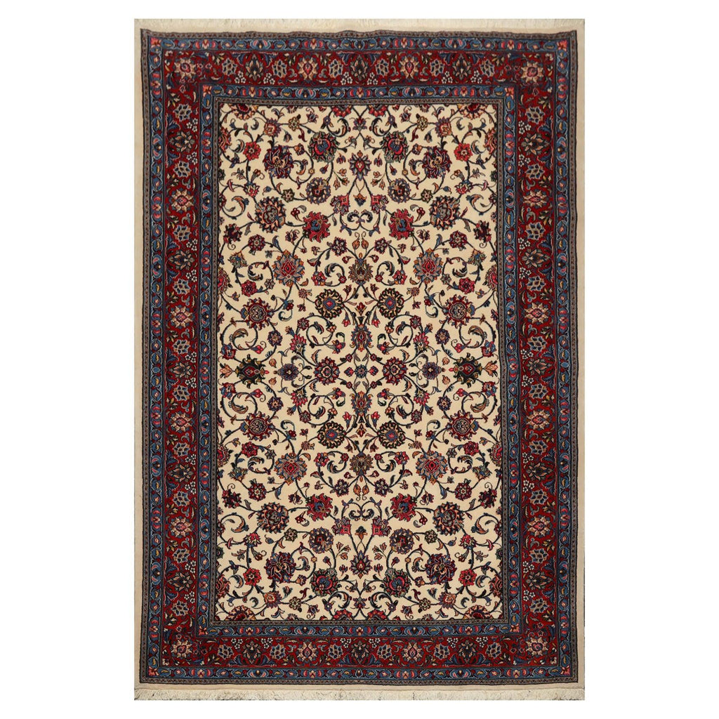 This is a beautiful Ivory, Red, Blue Color Sarouk design Hand Knotted, Oriental 100% Wool Rug. Its elegant style is easy to decorate with and perfect for living room, dining room, bedroom or anywhere in the residence and office.