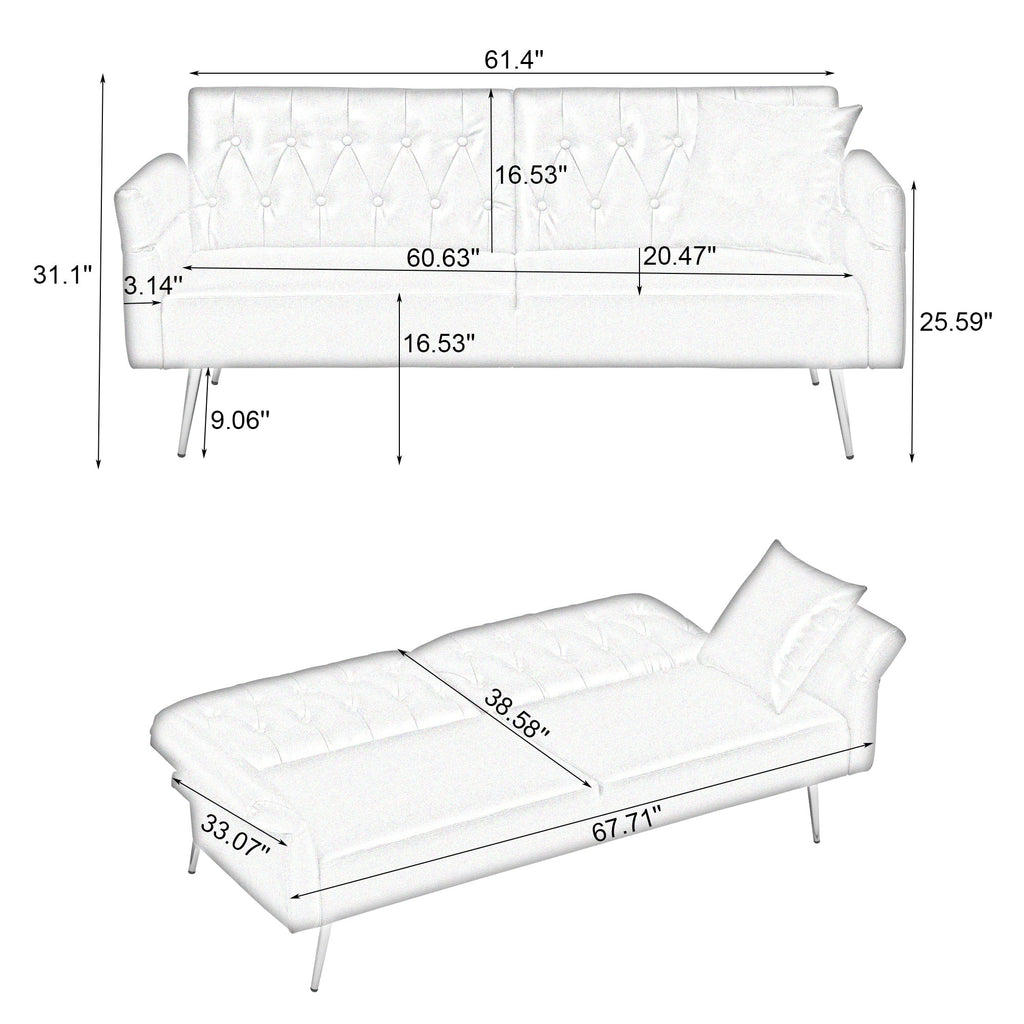 67.71 Inch Faux leather sofa bed with adjustment armres