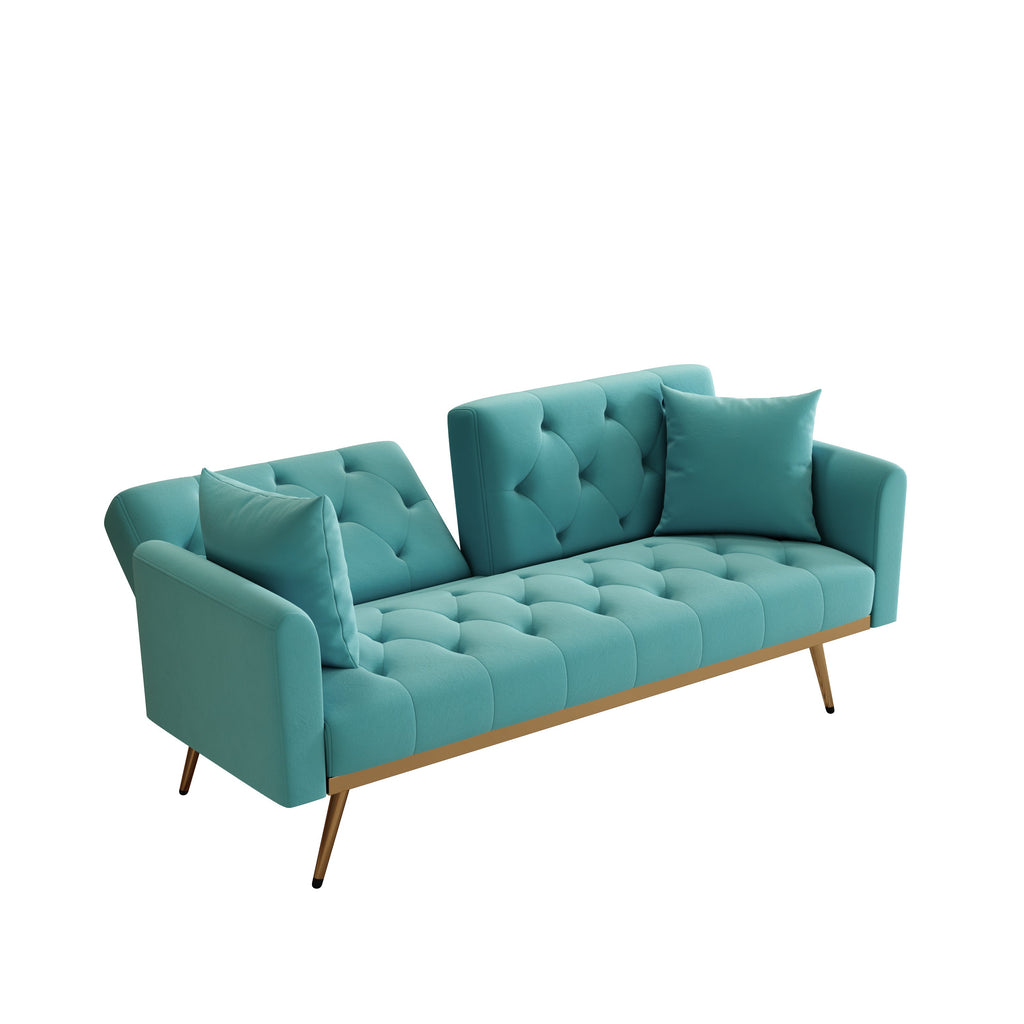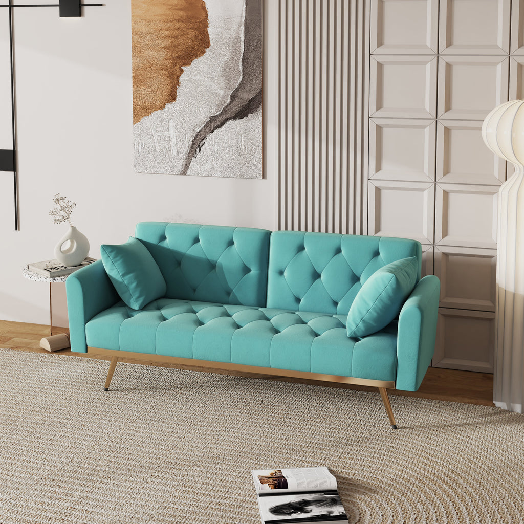 68.3" Baby Blue velvet nail head sofa bed with throw pillow and midfoot