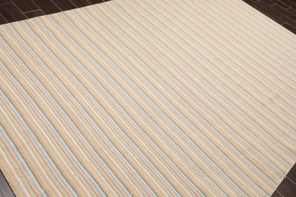 This is a beautiful Beige, Taupe, Gray Color Designer Stripes design Hand Knotted, Flat Weave Oriental 100% Wool Rug. Its elegant style is easy to decorate with and perfect for living room, dining room, bedroom or anywhere in the residence and office.