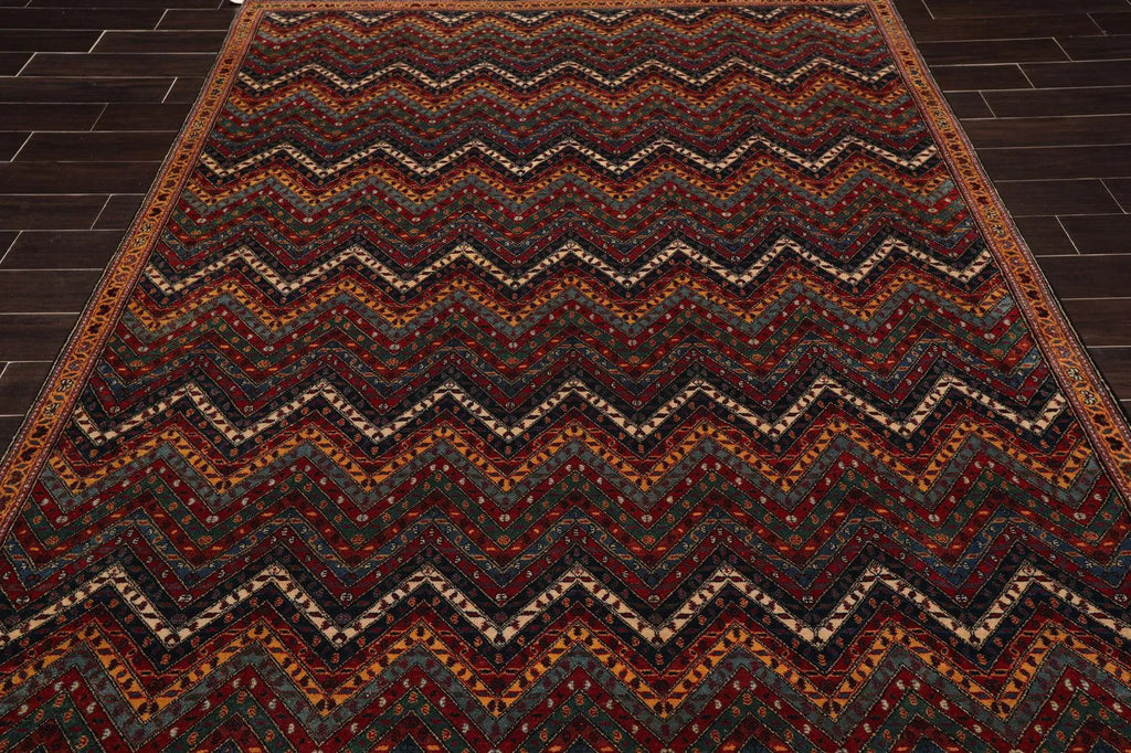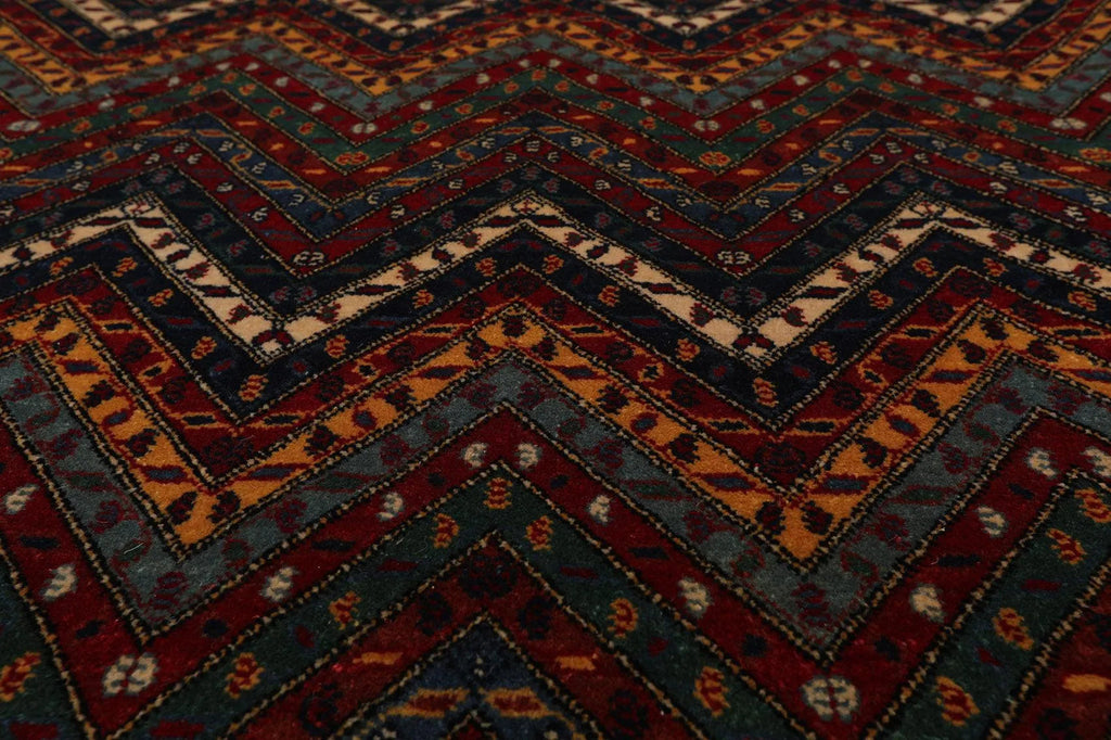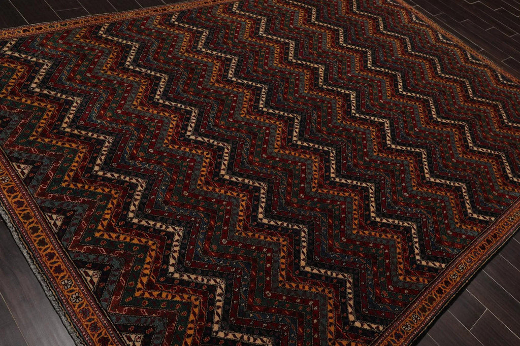 Kashkuli rugs are made in south western part of Iran by nomadic people. These attractive rugs are made entirely of wool with fine weave, fairly short pile and natural dyes. The yarns used for the pile are very soft and silky and this gives the rugs a beautiful sheen. Their designs are simplistic, influenced by folk inspired motifs, traditional geometric designs as well as naturalistic representations of animal motifs, people and trees of life. This simple yet dramatic geometric aesthetic embodies a certain modern, free-spirited style for which Kashkuli rugs are known.
