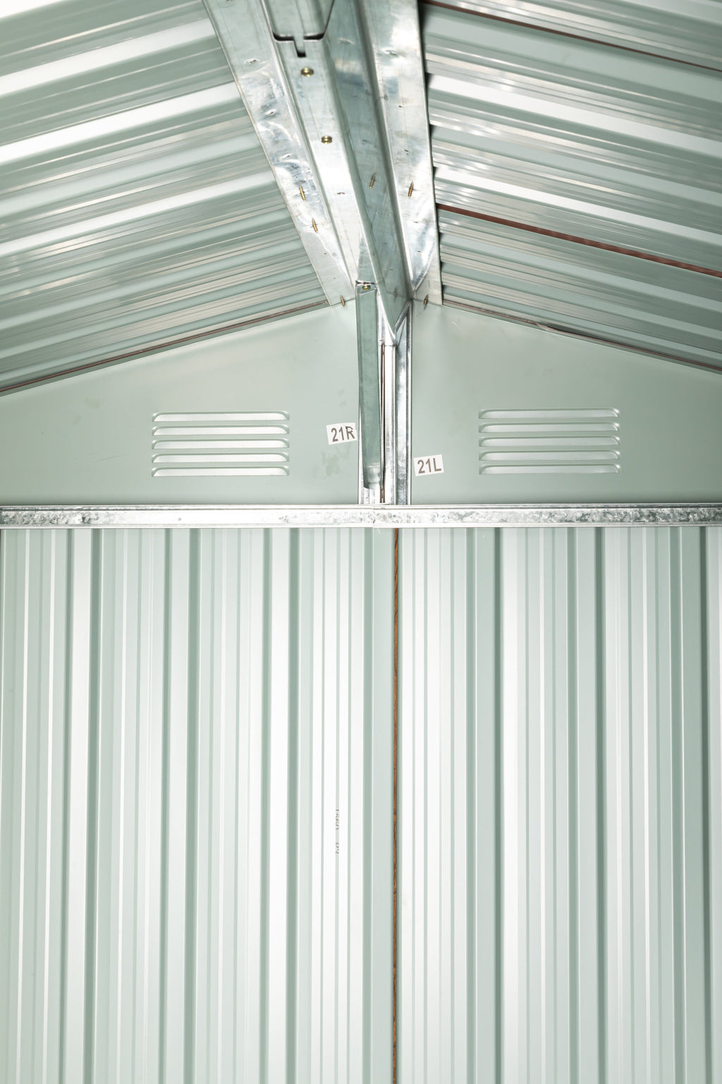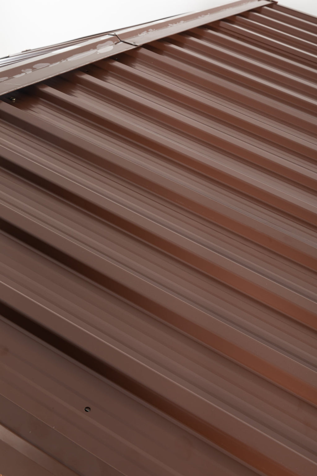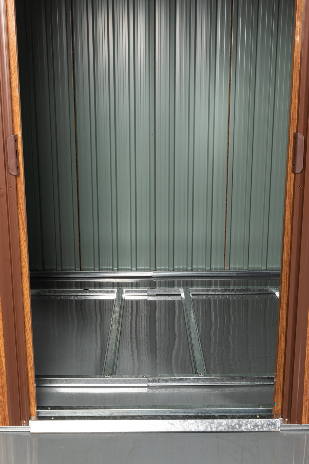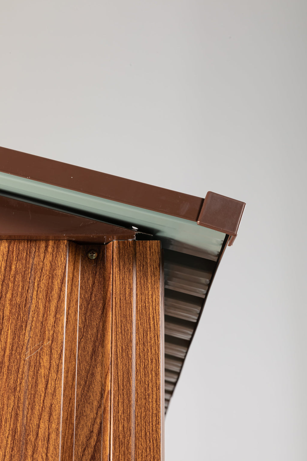 【Practical Garden Storage Solution】Appealing horizontal siding in woodgrain with coffee trim to complement the outdoor environment. Featuring a pent roof, this 6ft x 6ft storage shed provides impressive storage room for garden tools, equipment, and materials. 【Robust Construction】Nothing irks a garden hobbyist more than the sight of a collapsed shed. Luckily, this shed utilizes sui generis aluminum frames which greatly increase the overall sturdiness. On top of that, the galvanized steel panels, coated with eco-friendly painting, can endure harsh weather for at least 12 years. 【Punched Vents】Unlike typical sheds with plastic vents, this shed comes with four integrated punched vents which will not deteriorate against sunlight.The PC window. 【Sliding Doors and Padlock】 Pad-lockable sliding doors for easy entry and exit. A heavy-duty complimentary padlock grants extra safety. 【Easy to assemble】DIY assembly with pre-cut and pre-drilled parts for your convenience.The uniquely designed aluminum frames provide not only extra sturdiness but also a smooth assembly process. No experience is needed to finish the shed. 【Free Giving】Metal Foundation,Anchors,Hooks,Shelf,Locker(padlock),Gloves Easy-build shed made of Electro Galvanized Steel treated for strong corrosion resistance.UV resistant steel panels protect against rot, insects, and extreme weather conditions.