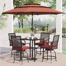 Cover your outdoor entertainment space in modern style with our amazing 6PC Outdoor Patio Bar Set Dining Table With Umbrella & Swivel Bar Stools. Boasting all the quality and comfort you crave, this set includes a sturdy and attractive dining table, umbrella, and four swiveling bar stools crafted of durable metal designs. Ideal for entertaining family and friends or simply lounging in the sun, this patio set will quickly become the go-to destination within your yard.