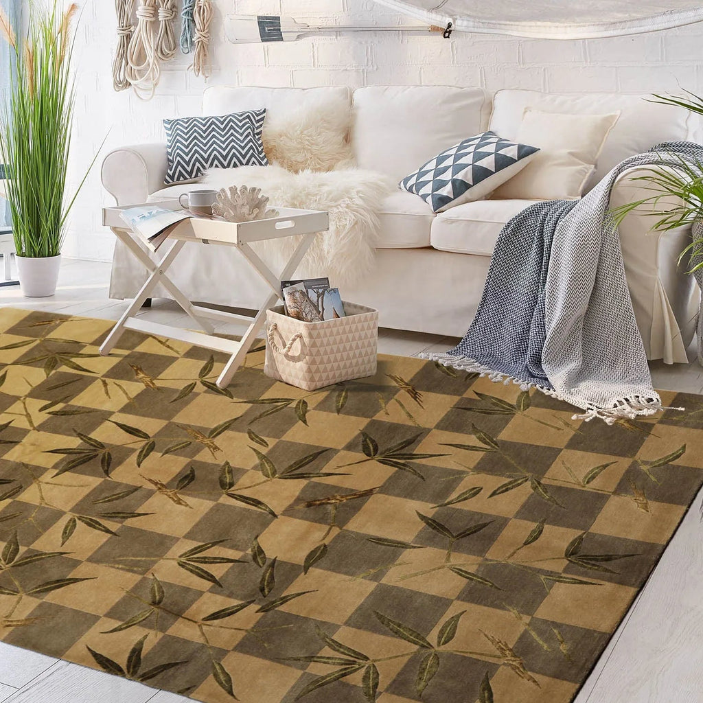Before you is a beautiful hand knotted Tibetan wool rug from Nepal. The wool not only adds to rug's durability, but also provides dirt repelling quality and thermal insulation. The rug features botanical elements against a checker board background. Its elegant style is easy to decorate with and perfect for living room, dining room, bedroom or anywhere in the residence or office.