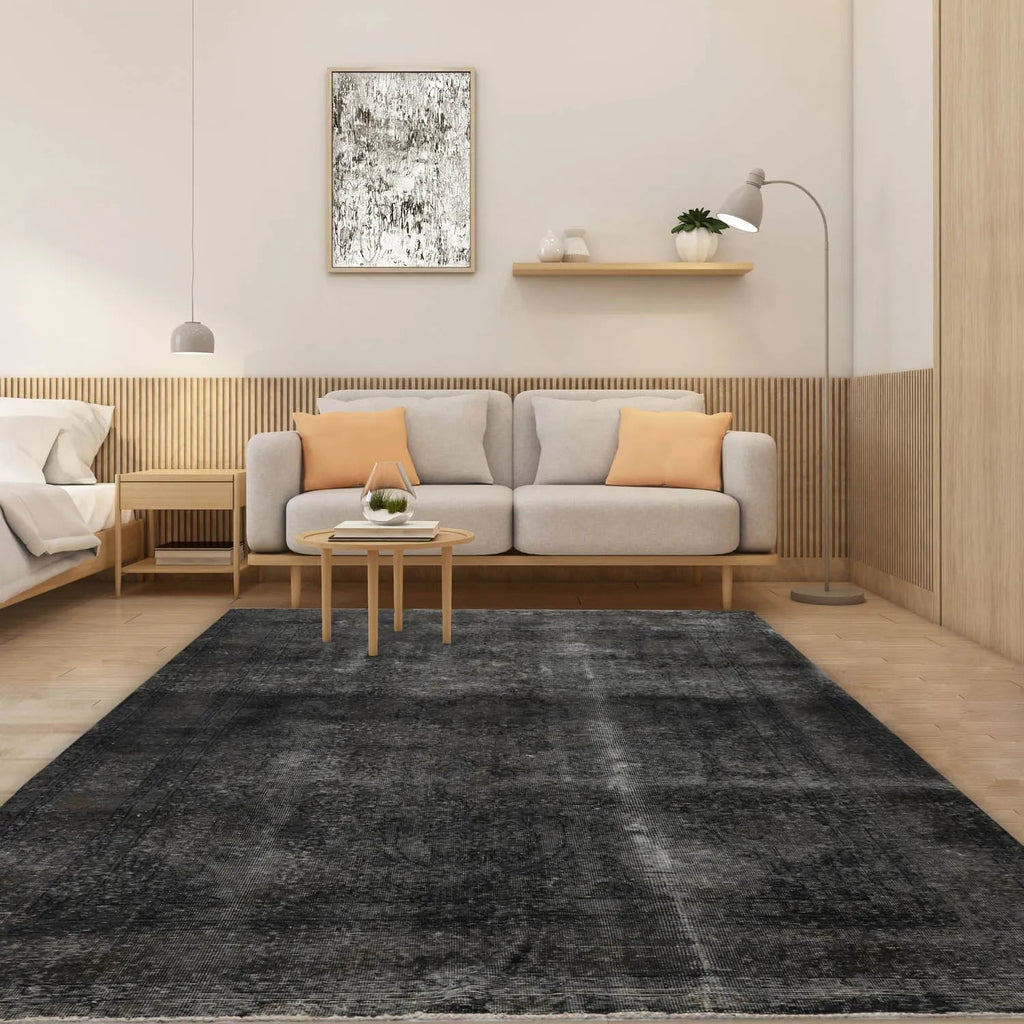 This is an authentic vintage Oushak from Turkey. It has been over-dyed and sheared down to a thin pile to suit contemporary design needs and decor.