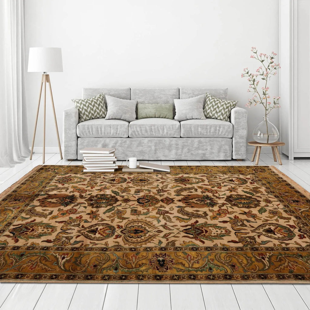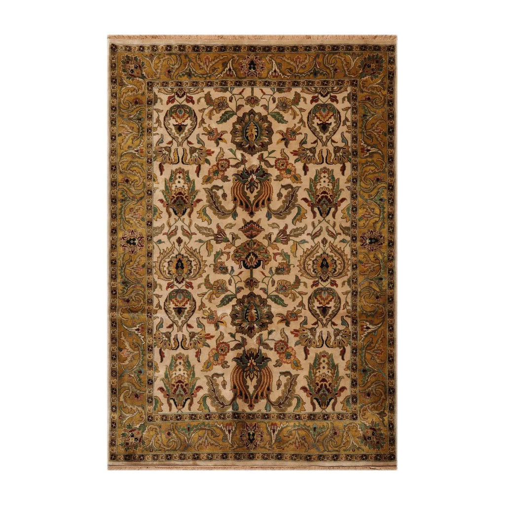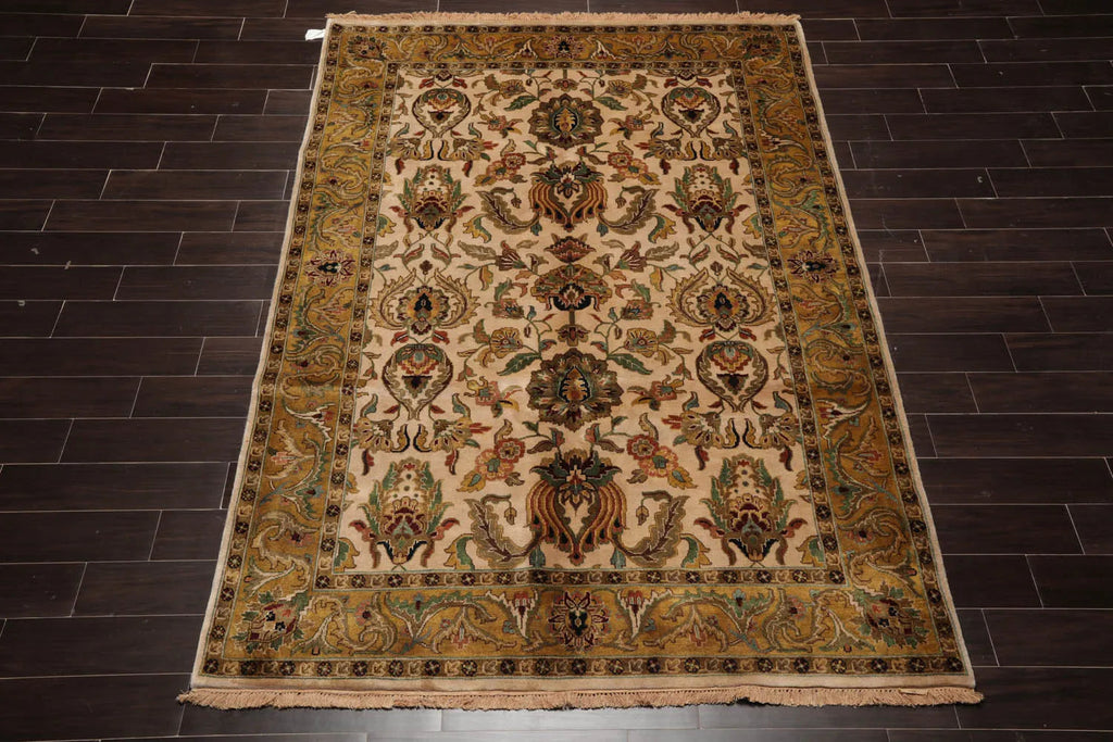 6x9 Hand Knotted New Zealand Wool Agra Traditional Oriental Area Rug Beige, Gold Color