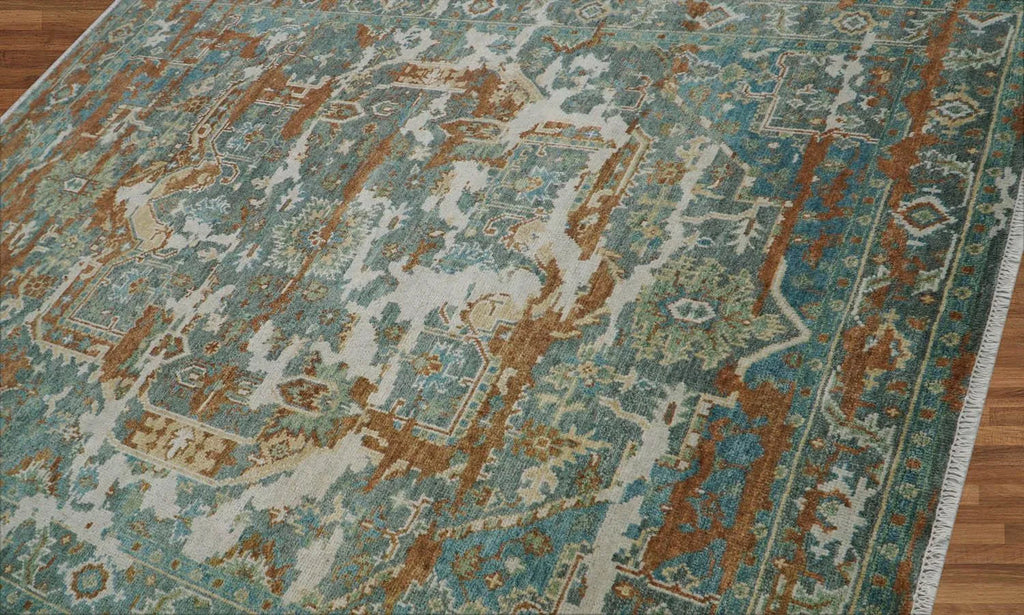 Story Behind the Art : Indo Oushak rugs (made in India) are a specific rug style that favors the weaving and design techniques of the authentic Oushak rugs from Turkey. The rugs retain the essence of the Persian rugs and produce identical themes and patterns consisting of beautifully designed medallions, niches, trees and figural motifs and all-over floral motifs. It was during the Mughal rule in India that the rug industry reached its zenith and came on its own as an art form. Tight weaving, silk like wool, bright, deep color range and realistic motifs became the defining feature of Indian rugs. It is this combination of exquisitely detailed and painstaking craftsmanship and masterful interplay of design elements that has earned Indian rugs age-defying allure and patronship defying borders and time. These rugs are made using a certain family of designs that originate in Usak, Turkey. They’re recognizable for their large-scale designs and understated elegance. They’re predominately made from lustrous wool and silk and feature muted earth tones such as cinnamon, saffron, green, ivory and gray. Usually they feature geometric pattern and you will find them with an allover design or with a central medallion motif.