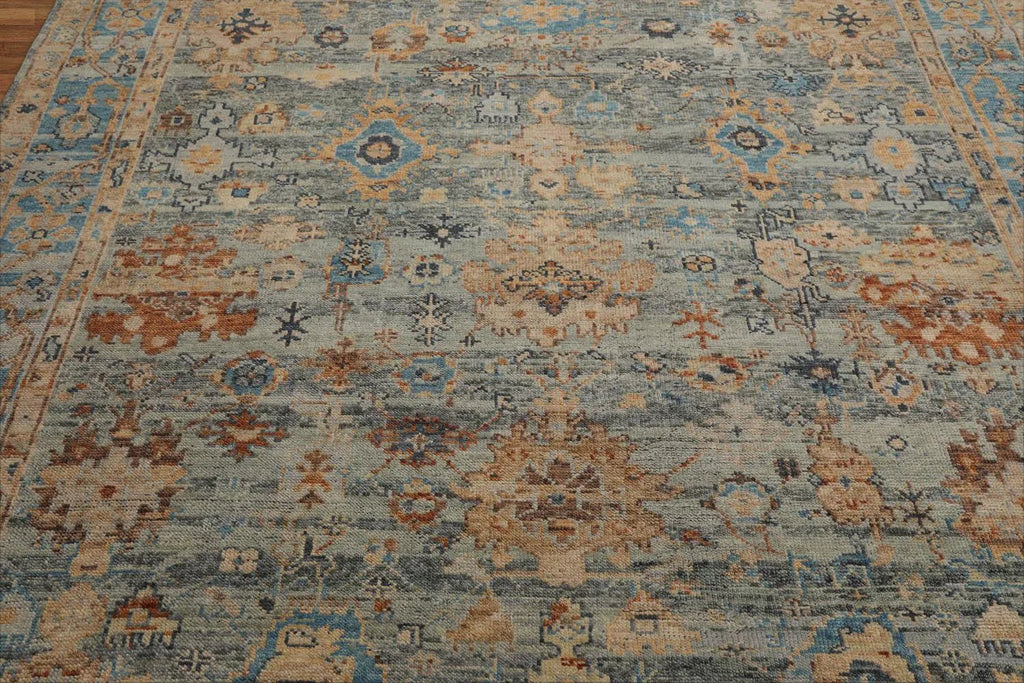 It has been produced using an identical weaving method and the design repertoire of the original Turkish Oushaks. Cosmopolitan and sophisticated in look, the rug has been handcrafted by artisans to a flawless composition. The main field comprising highly stylized floral and botanical elements is encompassed by a handsome multi-band border. The design of the border compliments the inner field and adds gentle grandeur to the artful composition of the rug. This rug representing an illustrious legacy of exquisite artistry and intricate craftsmanship is primed to add visual glamor and class to its surroundings. Its soft texture and timeless design make it ideal to enhance any space where it is placed.