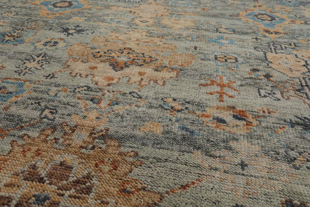 Story Behind the Art : Indo Oushak rugs (made in India) are a specific rug style that favors the weaving and design techniques of the authentic Oushak rugs from Turkey. The rugs retain the essence of the Persian rugs and produce identical themes and patterns consisting of beautifully designed medallions, niches, trees and figural motifs and all-over floral motifs. It was during the Mughal rule in India that the rug industry reached its zenith and came on its own as an art form. Tight weaving, silk like wool, bright, deep color range and realistic motifs became the defining feature of Indian rugs. It is this combination of exquisitely detailed and painstaking craftsmanship and masterful interplay of design elements that has earned Indian rugs age-defying allure and patronship defying borders and time. These rugs are made using a certain family of designs that originate in U?ak, Turkey. They’re recognizable for their large-scale designs and understated elegance. They’re predominately made from lustrous wool and silk and feature muted earth tones such as cinnamon, saffron, green, ivory and gray. Usually they feature geometric pattern and you will find them with an allover design or with a central medallion motif.