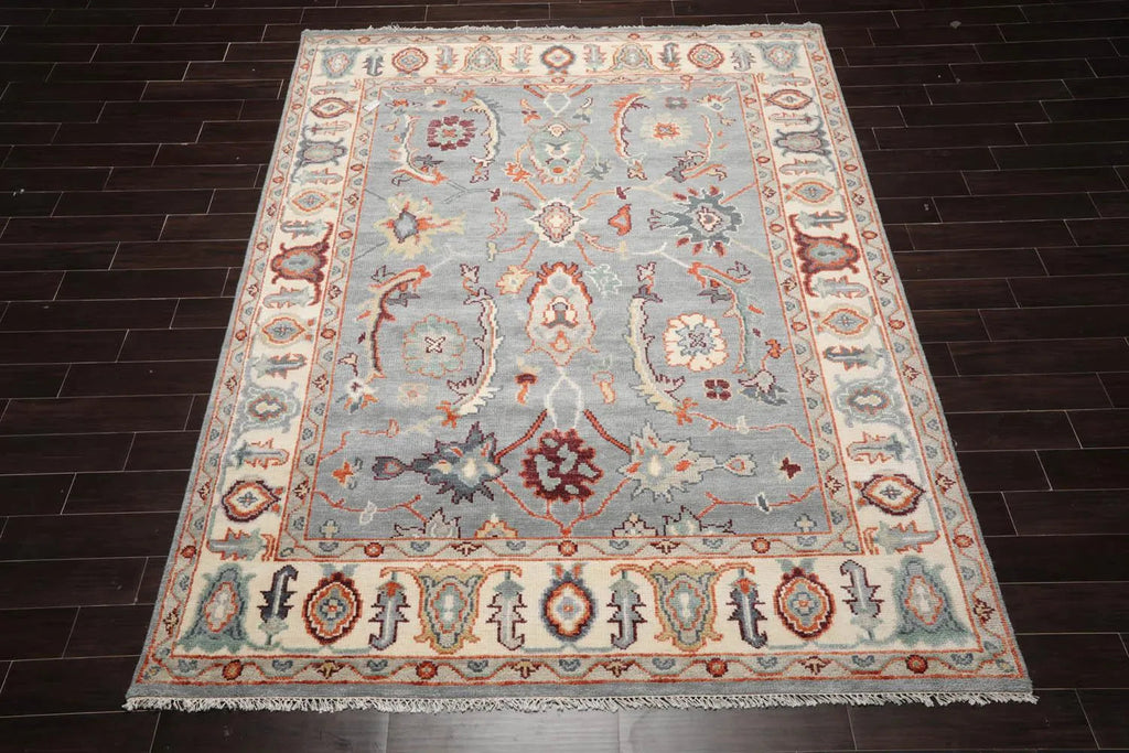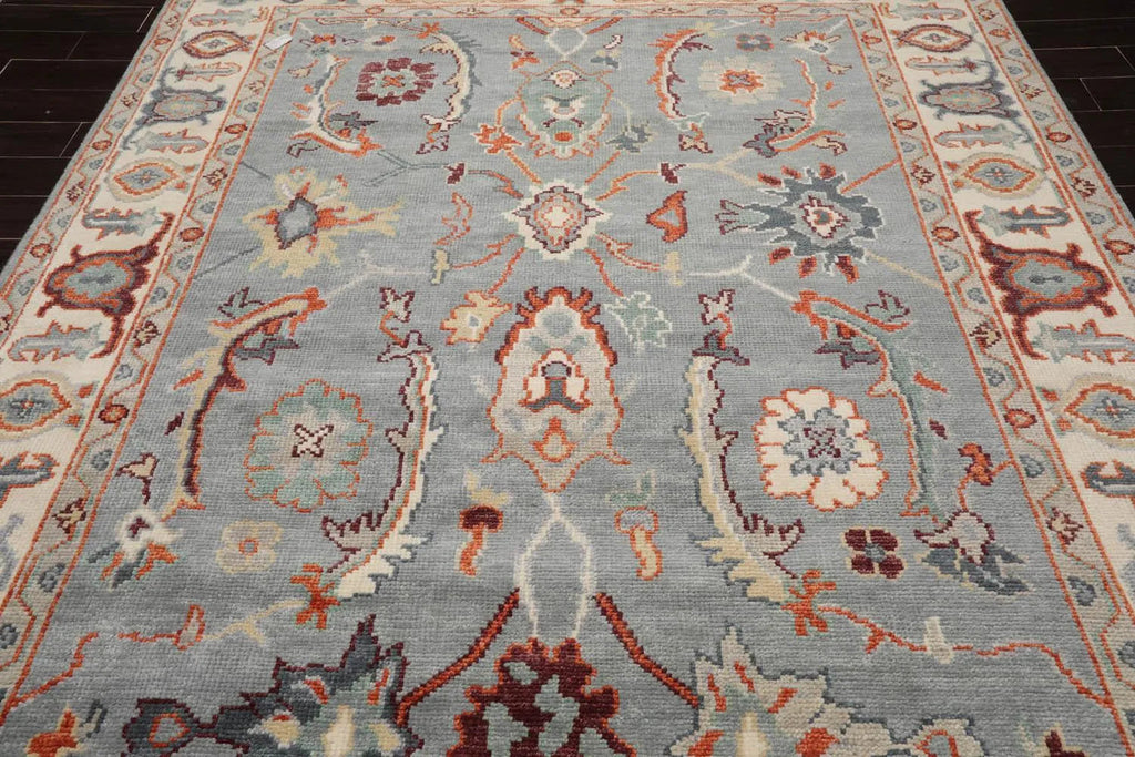 This is a beautiful Slate,Ivory,Maroon Color design Hand Knotted,Turkish Oushak Oriental 100% Wool Rug.