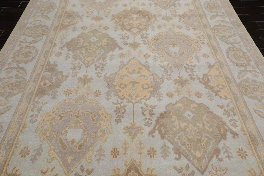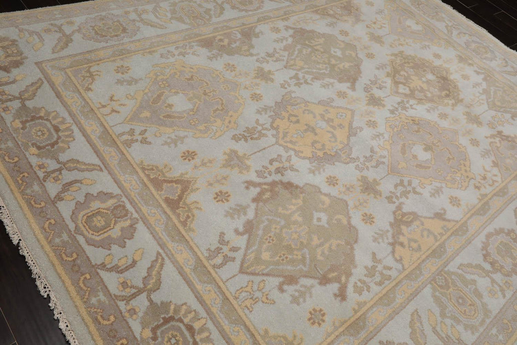 This is a beautiful Gray, Taupe, Light Gold Color Oushak design Hand Knotted, Oriental 100% Wool Rug.