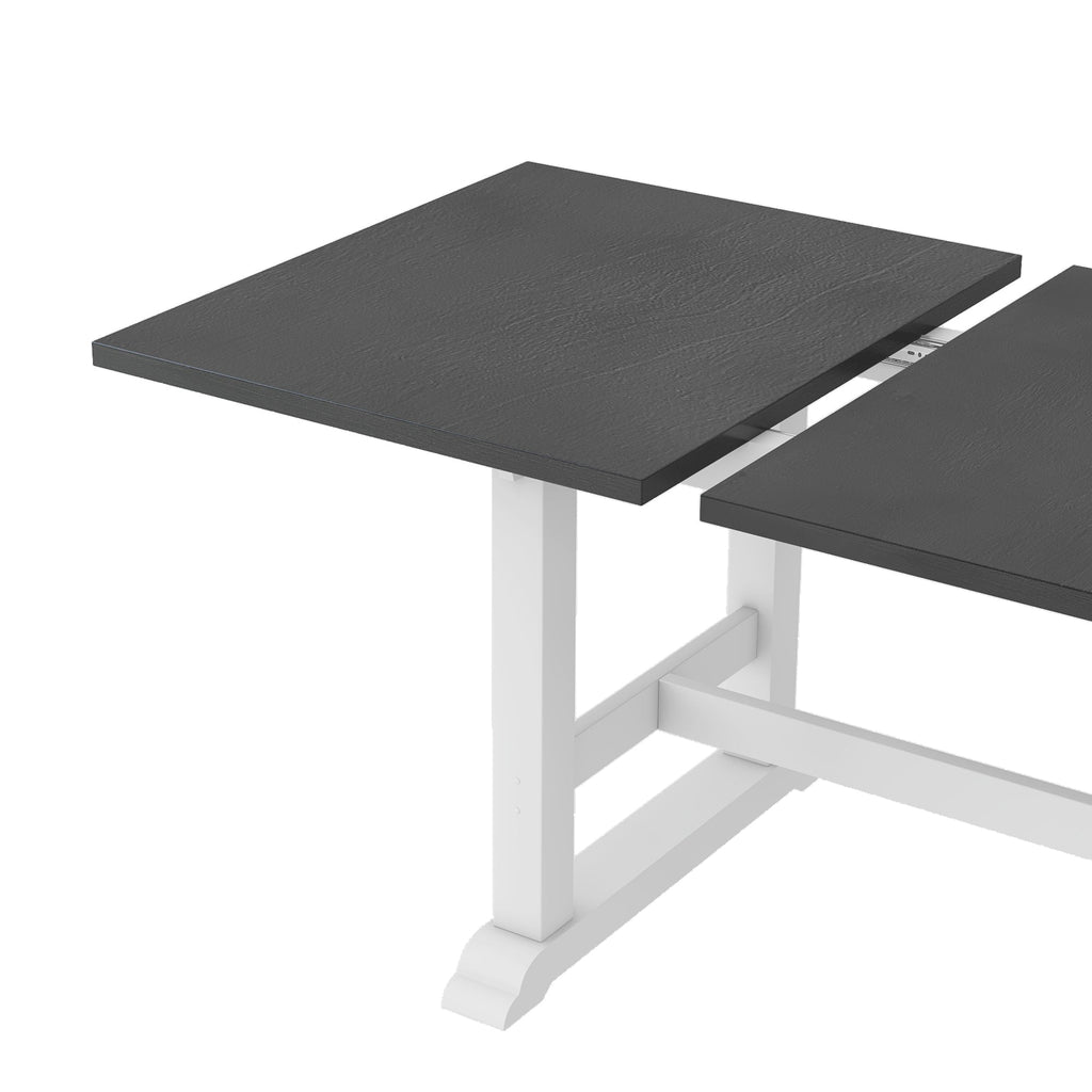 Featuring a beautiful weathered wood painted texture, this dining table can also extend to 76.9inch easily. With a 17.7inch removable leaf, it can be quickly adjusted to accommodate the number of guests.