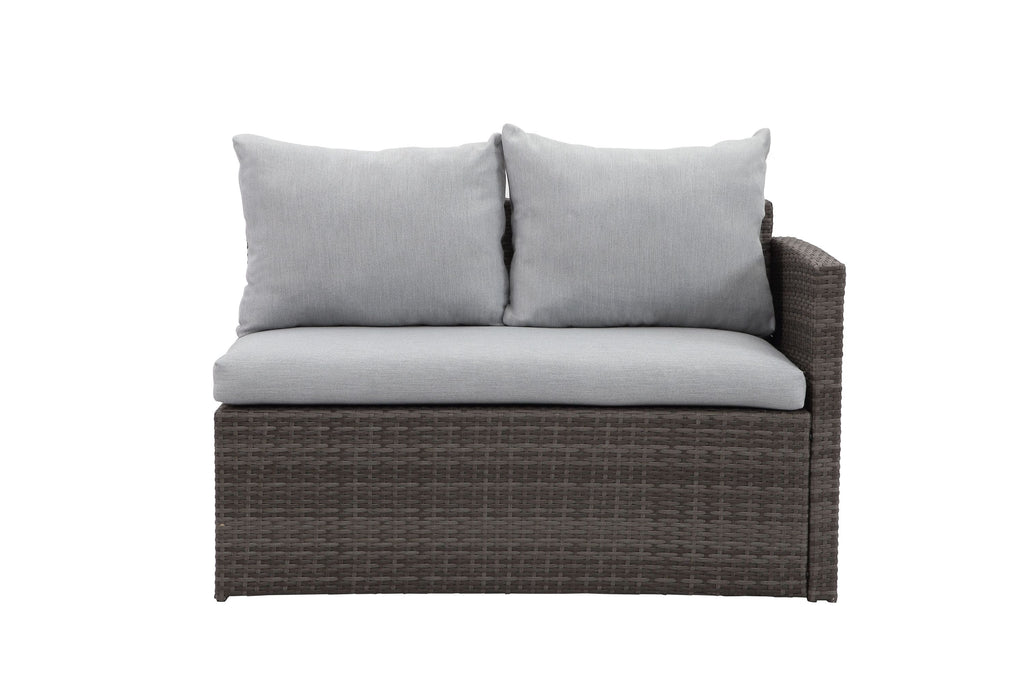 7-Pieces PE Rattan Wicker Patio Dining Sectional Cusions Sofa Set with Grey cushions