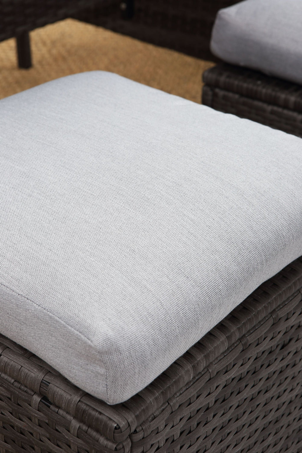 • This 7-Piece Sofa Seating Group with Cushions features 2 single loveseat, 1 corner loveseat, 1 dining table 3 ottoman. Whether you want to enjoy a meal or just relax and visit with family and friends, this set offers a comfortable setting for relaxation or entertaining outdoors. Perfect for any backyard.