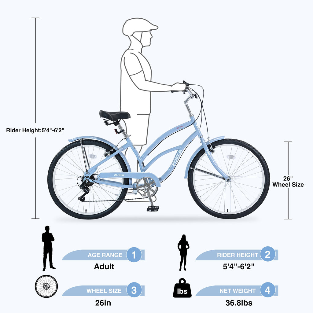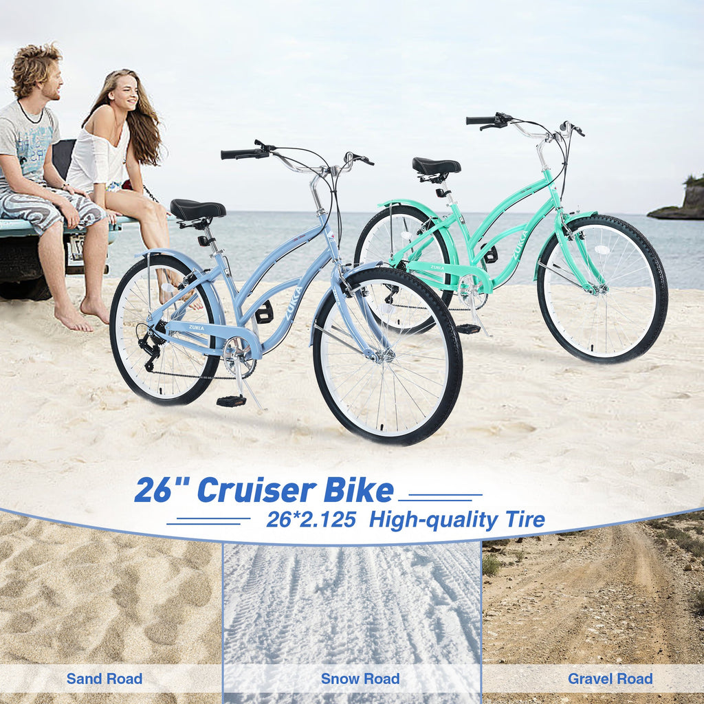 7 Speed Bicycles, Multiple Colors 26"Inch Beach Cruiser Bike