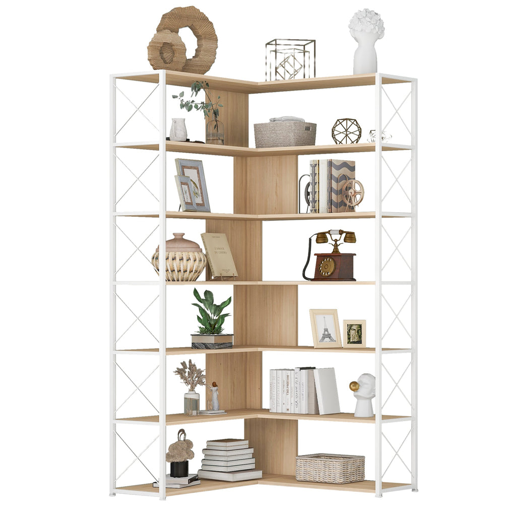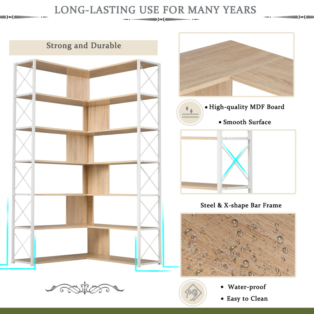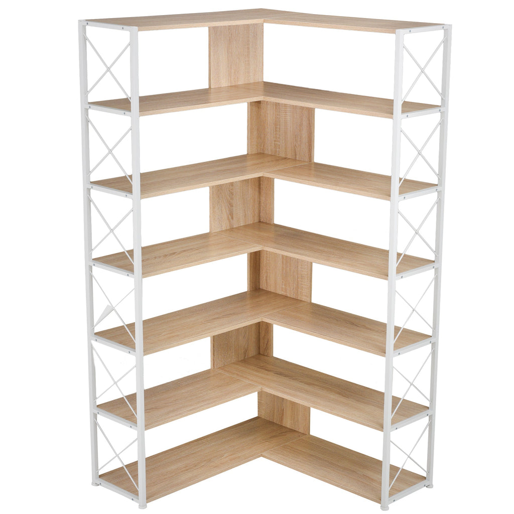 7-Tier Bookcase Home Office Bookshelf, L-Shaped Corner Bookcase
