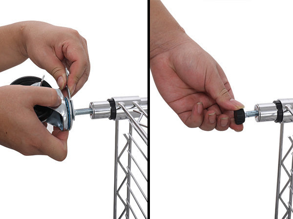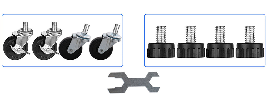 • [EASY MOVEMENT] - 7 tier garage shelves have 4 leveling feet, 4 3-inch industrial wheels(2 lockable). Wire rack on wheels can be easily positioned in supermarkets, garages, closets, kitchens, porch, pantry, etc. Height-adjustable leveling feet can be placed on uneven ground- simply twist to stabilize. Non-slip, will not scratch ground.